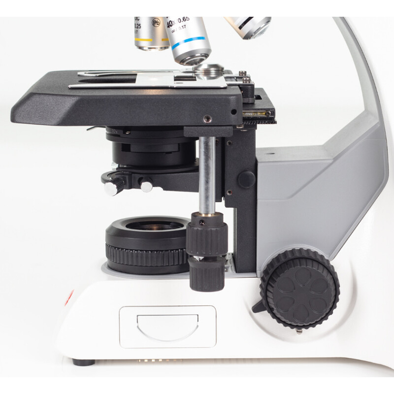 - Kondensor: Fokussierbarer und zentrierbarer N.A. 0.90 / 1.25 Abbe-Kondensor, mit Schlitz für Kontrastschieber und Irisblende