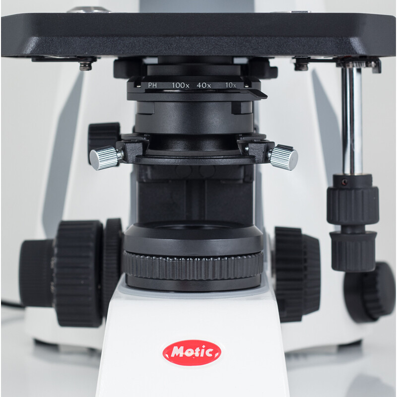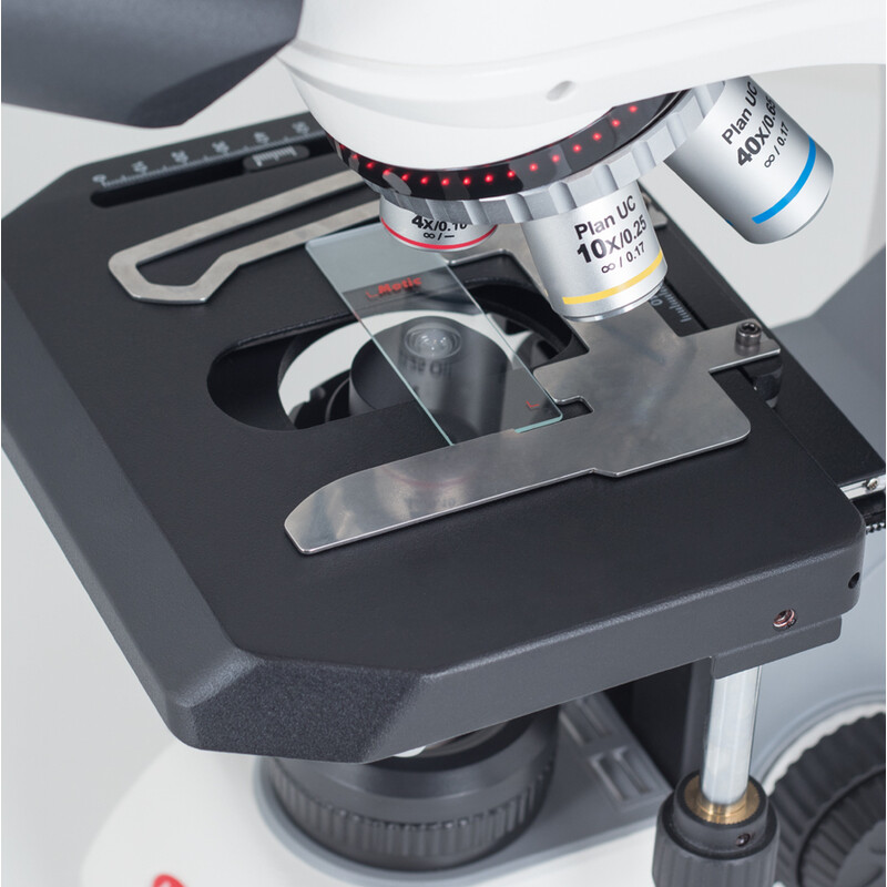 - Beleuchtungsfunktion: Motic LightTracer: Speicherfunktion, Schlafmodus (automatische Abschaltung), LED-Lichtintensitätsanzeige am Objektivrevolver