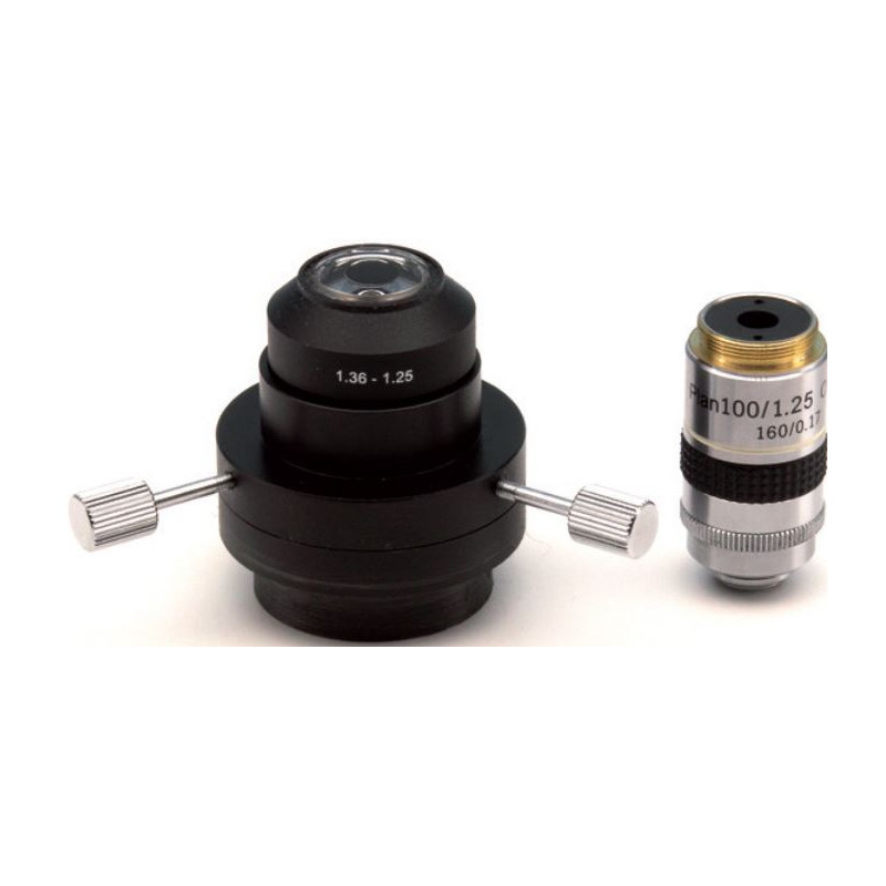 - Darkfield kondenzor — kondenzor N.A. 1.36 pre olejovú imerziu umožňuje zvýraznenie veľmi malých a transparentných objektov.