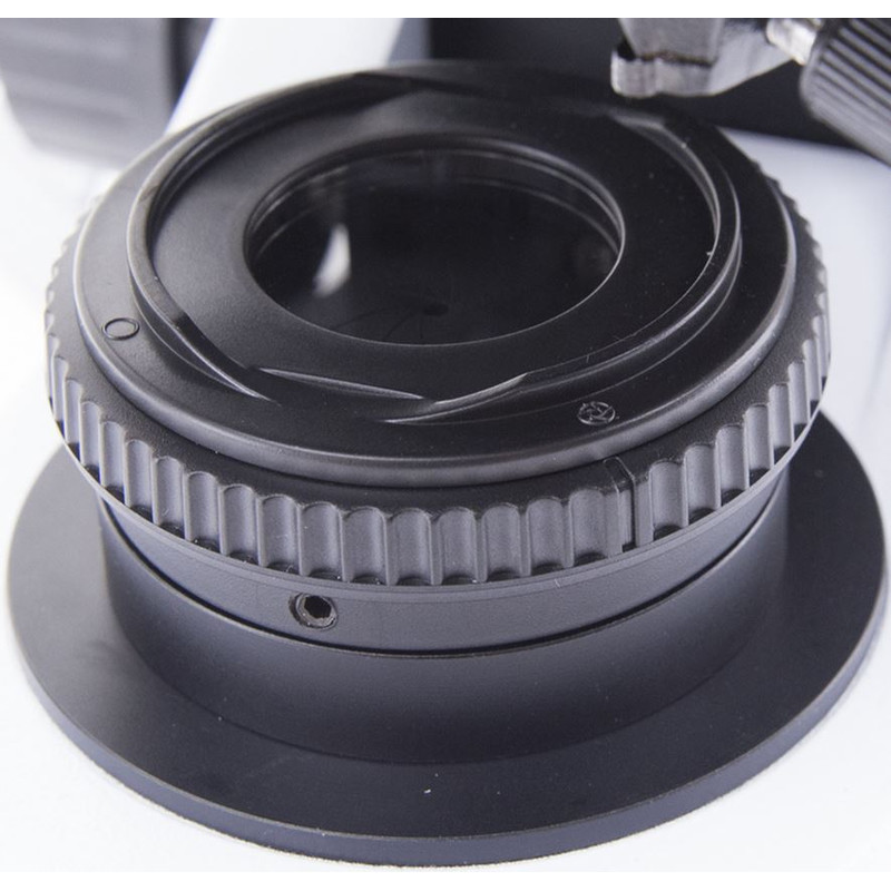 - Centrovatelný kondenzor — výklopný kondenzor N.A. 0.2 / 0.9 s irisovou clonou pre presné nastavenie kontrastu pri rôznych zväčšeniach.