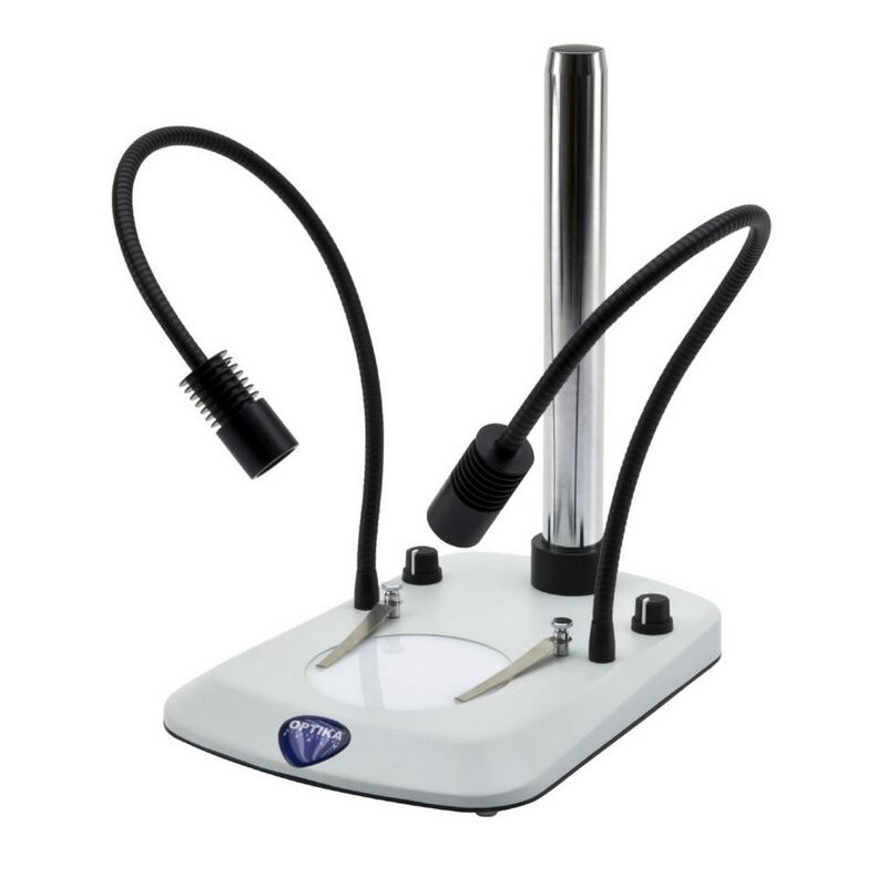 Stojan OPTIKA SZ-ST7 je profesionálna pracovná základňa pre stereomikroskopy vybavená pokročilým systémom X-LED osvetlenia. Kombinuje flexibilné dopadajúce osvetlenie pomocou dvoch ramien X-LED³ s výkonom 3,6 W na každé rameno a prechádzajúce osvetlenie prostredníctvom 12-LED disku X-LEDT1. Vďaka tejto kombinácii je možné efektívne pozorovať transparentné aj nepriehľadné vzorky v laboratórnych alebo priemyselných podmienkach.