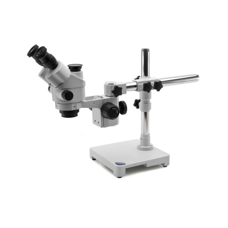 Stereozoom mikroskopická zostava s trinokulárnou hlavou, optickým systémom Greenough a stabilným kĺbovým ramenovým stojanom pre presnú priemyselnú a laboratórnu inšpekciu