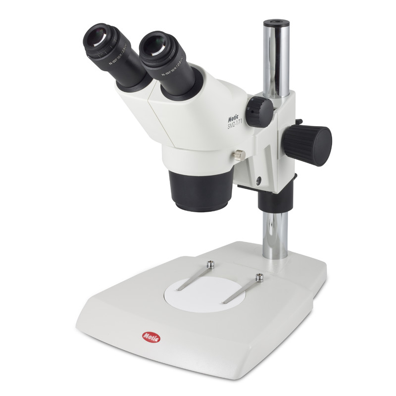 Mit dem neuen Stereozoom-Mikroskop SMZ171 stellt Motic eine Ergänzung der gut eingeführten SMZ Stereo Serie vor. Neue Materialien für ESD-Kompatibilität und optimierte LED- Beleuchtungsoptionen wurden dieser Serie zugefügt, um eine vielseitige Stereomikroskop-Plattform für einen weiten Bereich der biologischen und materialkundlichen Anwendungen zu gestalten. Die optische Leistung des SMZ171 und erweitertes Zubehör machen das Gerät zum idealen Stereomikroskop für die anspruchsvollen Anforderungen in Routine und Forschung. Von biologischen und medizinischen Präparationen bis zur industriellen Qualitätskontrolle und Inspektion, liefert das SMZ171 wiederholt klare und verzerrungsfreie Bilder. Das optische System nach Greenough bietet einen großzügigen Zoombereich von 6,7:1, Parfokalität bei allen Vergrößerungen und ein 5-Positionen-Klick-Stopp-Mechanismus, der in den stufenlosen Zoom eingefügt wurde, ermöglicht die präzise Reproduktion der Vergrößerungen für einfaches Messen. Der 110mm Arbeitsabstand in der Standardkonfiguration bietet ausreichend Platz für jegliche Probenbetrachtung und Handhabung. Die verbesserte Tiefenschärfe produziert gleichmäßige und überzeugende dreidimensionale aufrechte Bilder. Weiterhin kann das SMZ171 leicht in eine komplette Dokumentationsstation umgewandelt werden durch die Verbindung mit einer der Moticam-Kameras.