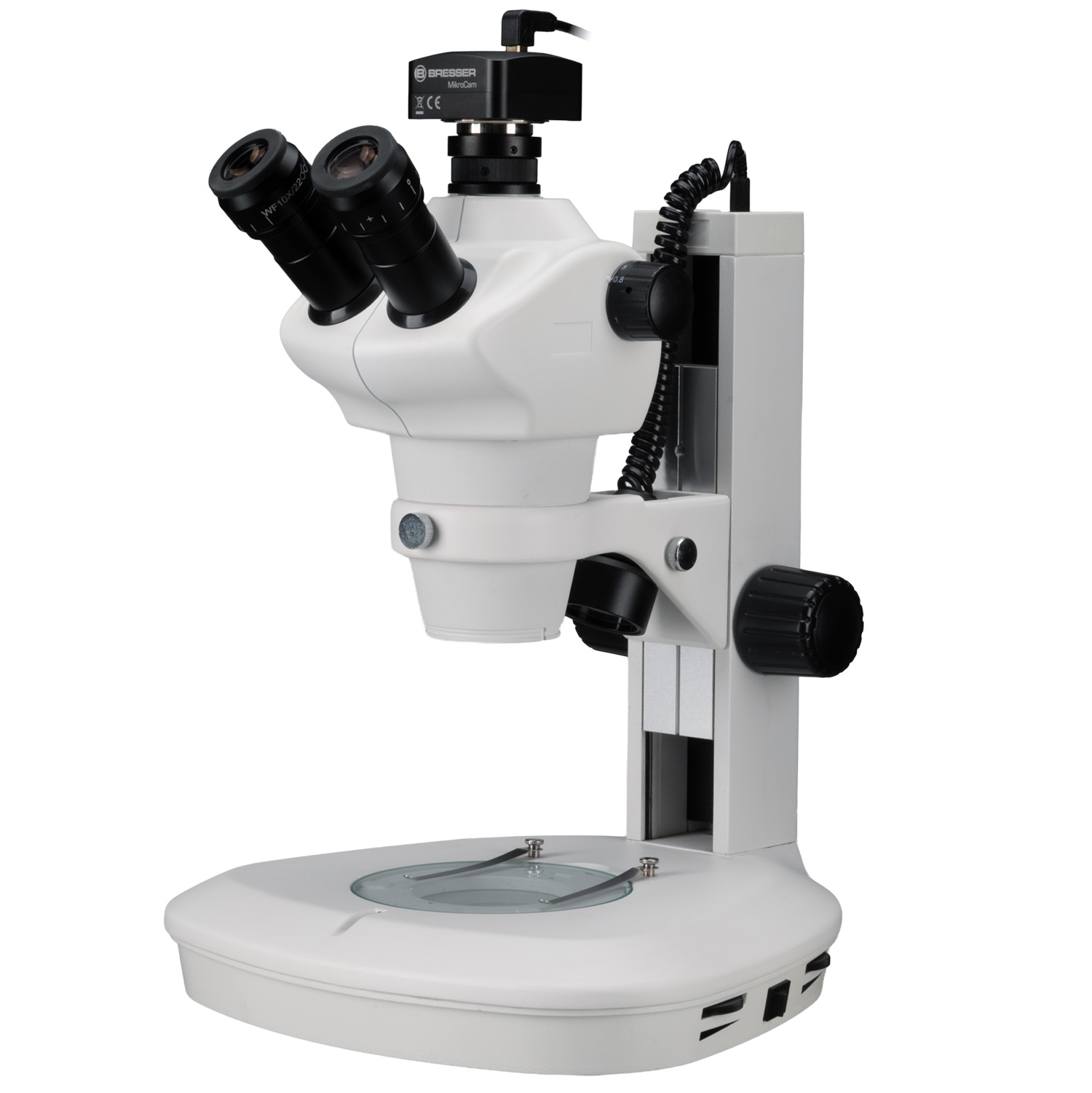 Mimoriadne široká základňa s objektovým stolíkom a mimoriadne široký rozsah nastavenia výšky umožňujú aj pozorovanie väčších objektov. Prístroj má osvetlenie dopadajúcim a prechádzajúcim svetlom LED, ktoré možno používať samostatne alebo v kombinácii a každé z nich je plynulo nastaviteľné. Uhol dopadu dopadajúceho svetla sa dá nastaviť a zablokovať mimoriadne užívateľsky prívetivým spôsobom. Plynulý rozsah zväčšenia od 8x do 50x sa realizuje pomocou vymeniteľných širokouhlých okulárov (WF10x) a 6,25x stereozoomového objektívu (0,8x-5x). Zväčšenie s klikacou zarážkou sa zapína v preddefinovaných polohách, takže zväčšenia sa dajú presne reprodukovať, napr. pri meraní na mikroskope. Okuláre majú číslo zorného poľa 22, čo umožňuje viditeľné zorné pole v rozsahu 4,5 až 27,5 mm.