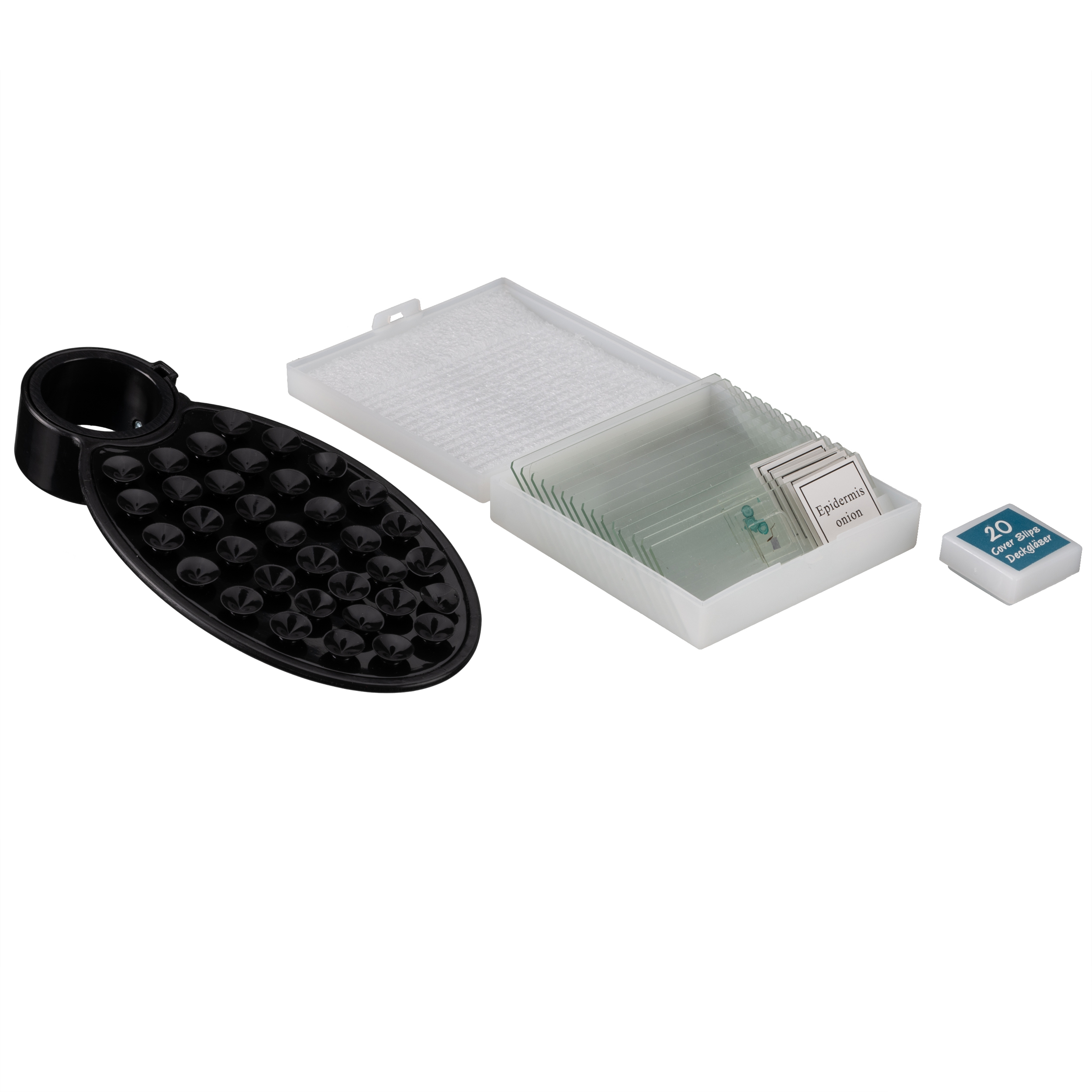 - Prípravná škatuľka s trvalými preparátmi, prázdnymi sklíčkami a krycími sklíčkami