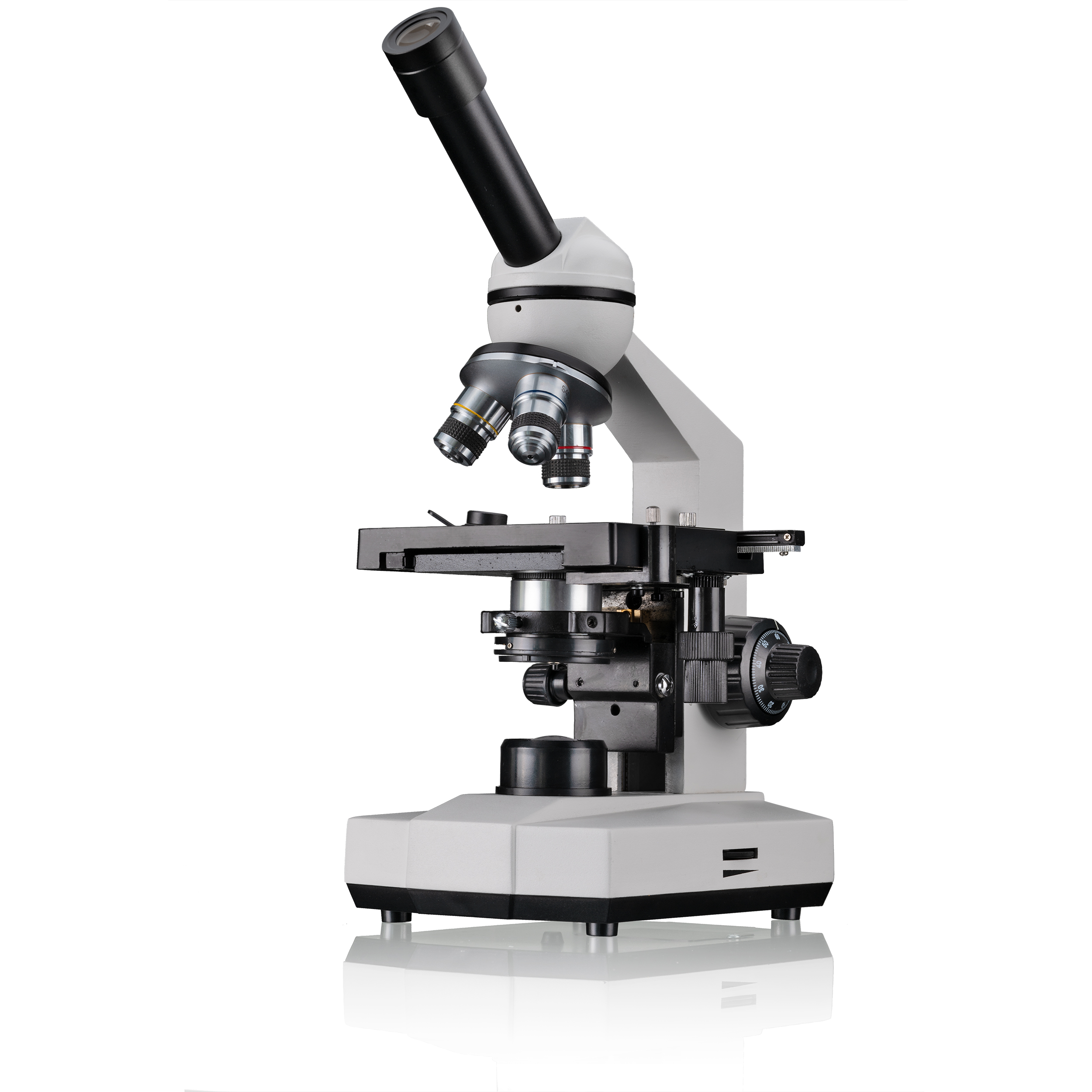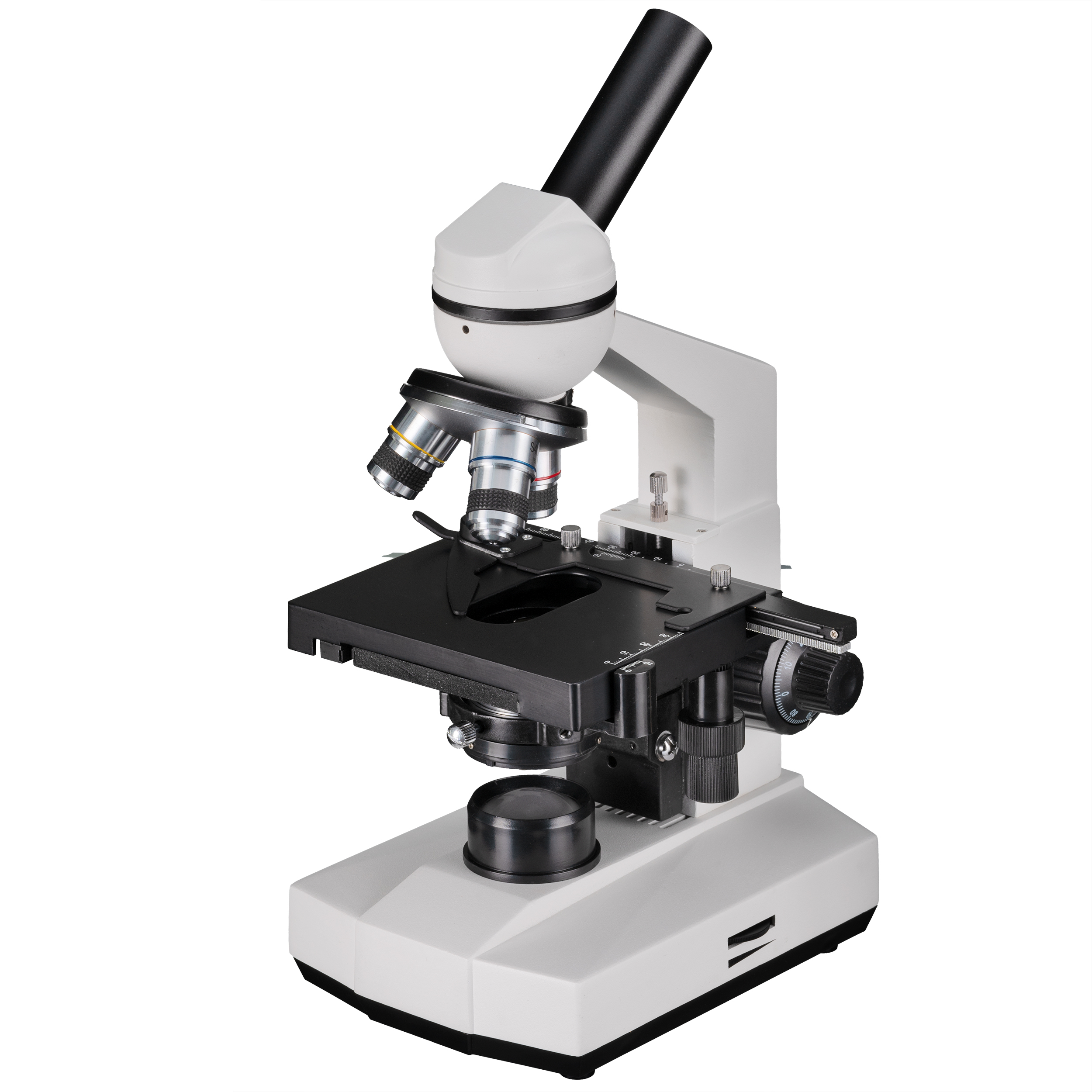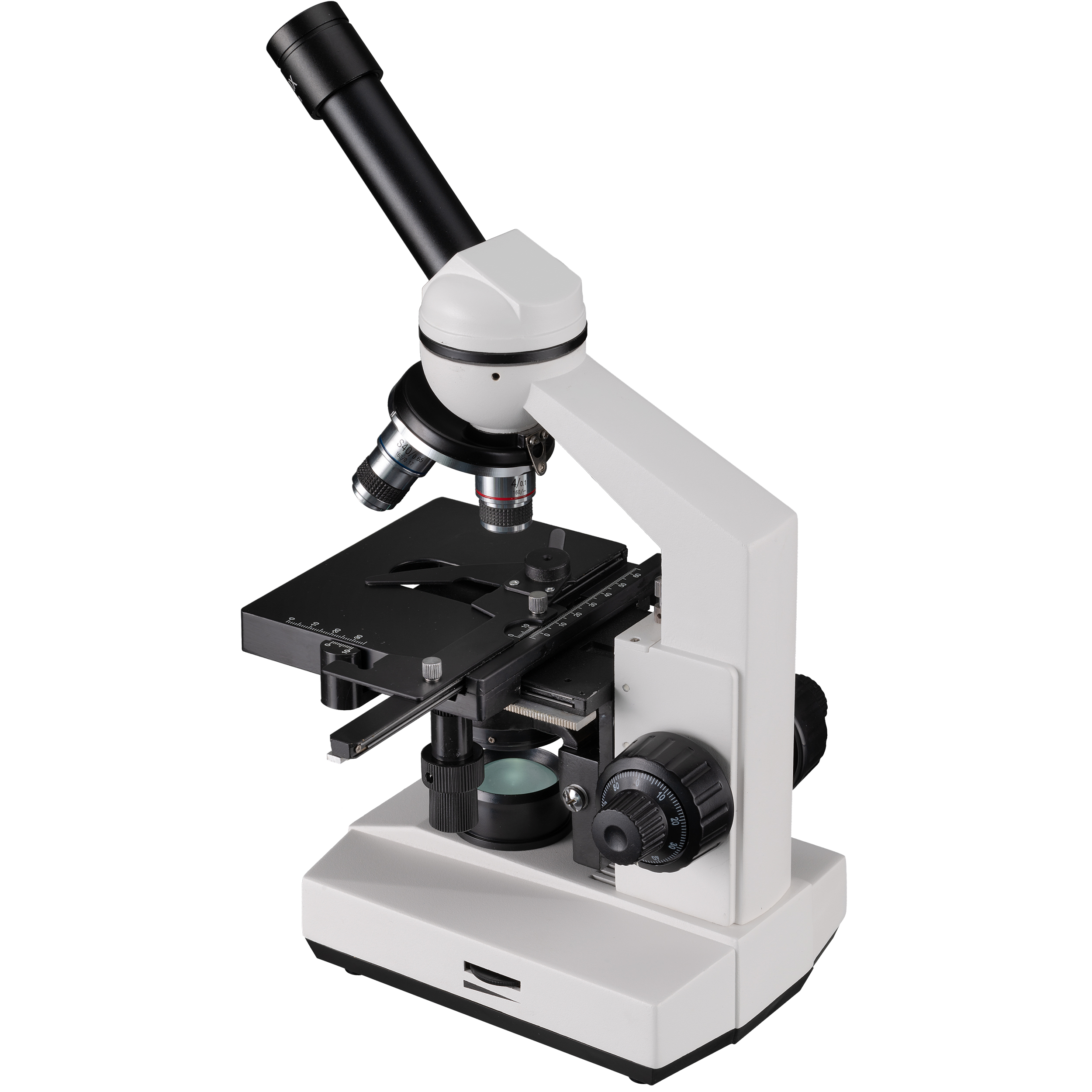 Zväčšenia (40x, 100x, 400x) ponúkajú dostatočné rozlíšenie na rozpoznanie aj jemných detailov. Nie je potrebná časovo náročná práca s imerzným olejom. Achromatické objektívy DIN zaručujú veľmi dobrý obraz. Objektív 40x je odpružený, aby sa zabránilo poškodeniu objektívu alebo vzorky.