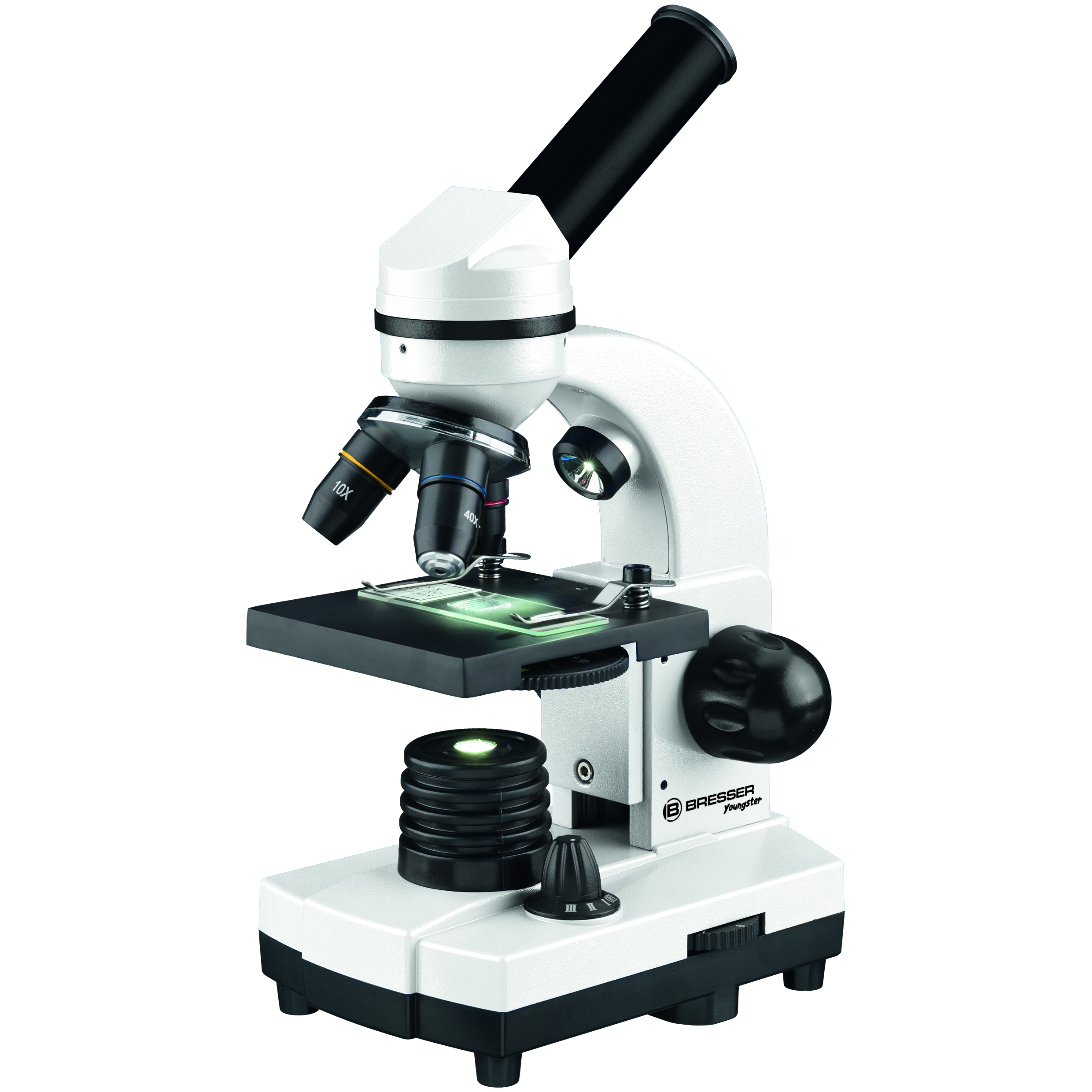 Študentský mikroskop BRESSER YOUNGSTER so širokou škálou príslušenstva ponúka ideálny úvod do mikroskopie. Jedinečným prvkom týchto modelov je Barlowov systém zväčšenia v tubuse okulára: Prídavný objektív, ktorý sa dá vytiahnuť, umožňuje počas vizuálneho pozorovania plynulo meniť zväčšenie až na 2-násobné, takže spolu s 3 objektívmi a 2 vymeniteľnými širokouhlými okulármi možno dosiahnuť zväčšenie 40x až 1600x.