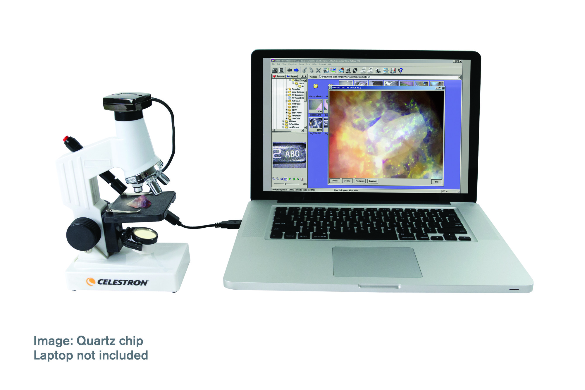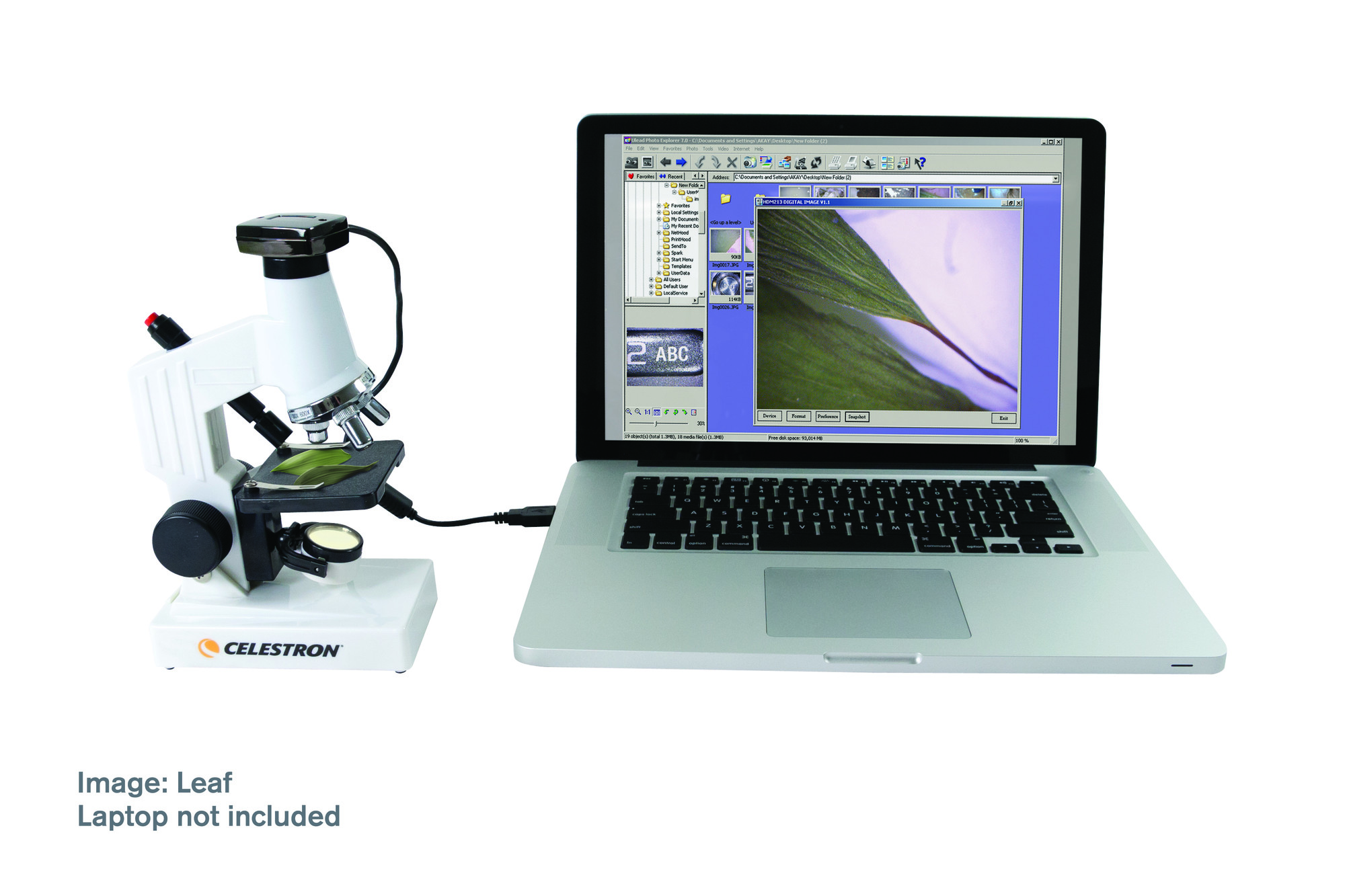 Das CELESTRON DMK-MIKROSKOP-SET können Sie vielseitig einsetzen. Entweder nutzen Sie es als klassisches Mikroskop mit bis zu 600-facher Vergrößerung – oder Sie schließen die beiliegende Digitalkamera an, um die Bilder an Ihrem Computer zu betrachten. Es ist das perfekte Werkzeug, um den Mikrokosmos zu erkunden. Mit der beiliegenden Software können Sie digitale Bilder und Filme auf Ihrem Rechner speichern.