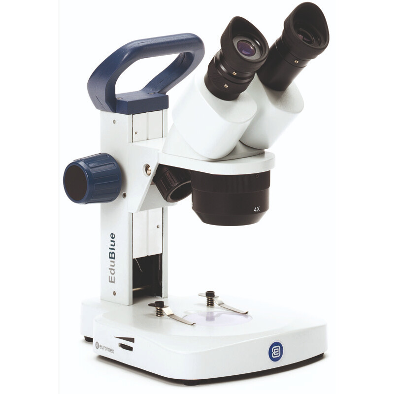 Mikroskop EduBlue je ideálny na vzdelávacie účely. Je k dispozícii s dvojitým alebo trojitým objektívom a dosahuje rozsah zväčšenia 5x až 80x. Vysielané svetlo a LED osvetlenie s odrazeným svetlom umožňujú trojrozmerné pozorovanie malých objektov, ako sú hmyz a kamene.