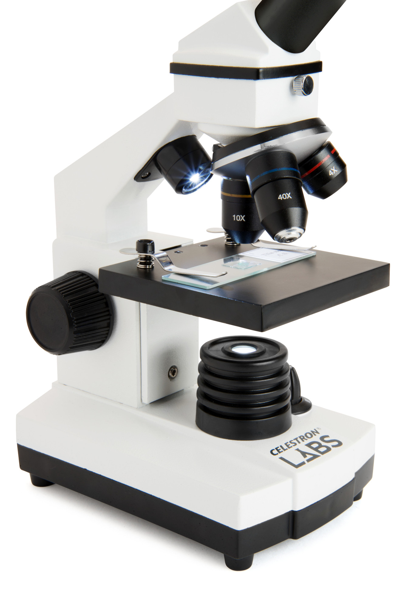 Das Celestron Labs CM800 Labormikroskop bietet moderne Technik zu einem attraktiven Preis. Dazu gehört die LED Auf- und Durchlichtbeleuchtung für helle, natürliche Farben, ohne dass die Proben erhitzt werden. Zwei Okulare (10x und 20x) und 3 Objektive (4x, 10x und 40x) ermöglichen 40x, 80x, 100x, 200x, 400x und 800x Vergrößerung.