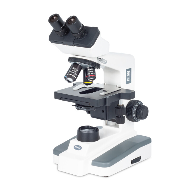 Die Motic B1Elite Modelle schließen die Lücke zwischen Ausbildungsbereich und beruflicher Nutzung eines Mikroskops. Der Tisch ohne hervortretende Zahnstange ist für den Anfänger konzipiert, ebenso die Dunkelfeld-Option mit ihrer attraktiven Bildcharakteristik. Die “kühle” LED-Beleuchtung schont hitze-empfindliche Präparate im Biologie-Unterricht. Die verbesserten Semi-Plan Objektive sorgen gemeinsam mit der 3W LED-Beleuchtung und koaxialem Fokussiertrieb für eine professionelle Ausrüstung bei niedergelassenen Ärzten und im kleinen Labor. Phasenkontrast wird über Einsteck-Hülsen für die Phasen-Objektive 10X/40X verwirklicht und sorgt für Einsätze bei Urinsedimenten und Abstrichen.