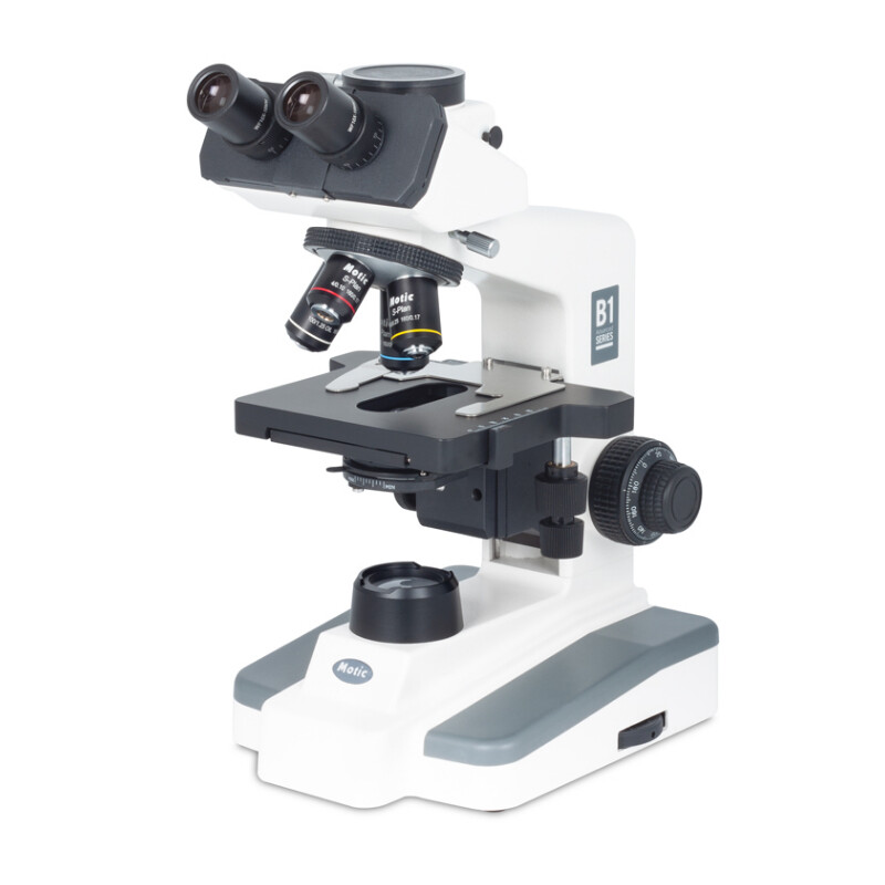 Die Motic B1Elite Modelle schließen die Lücke zwischen Ausbildungsbereich und beruflicher Nutzung eines Mikroskops. Der Tisch ohne hervortretende Zahnstange ist für den Anfänger konzipiert, ebenso die Dunkelfeld-Option mit ihrer attraktiven Bildcharakteristik. Die “kühle” LED-Beleuchtung schont hitze-empfindliche Präparate im Biologie-Unterricht. Die verbesserten Semi-Plan Objektive sorgen gemeinsam mit der 3W LED-Beleuchtung und koaxialem Fokussiertrieb für eine professionelle Ausrüstung bei niedergelassenen Ärzten und im kleinen Labor. Phasenkontrast wird über Einsteck-Hülsen für die Phasen-Objektive 10X/40X verwirklicht und sorgt für Einsätze bei Urinsedimenten und Abstrichen.