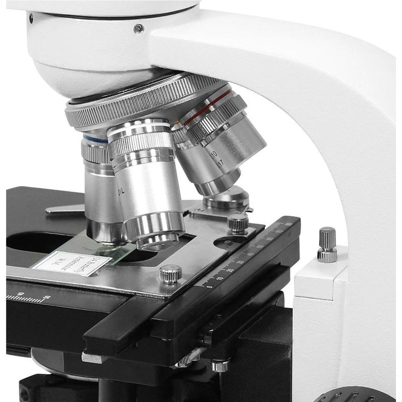 Das Omegon Binoview Mikroskop ist mit einem riesigen Vergrößerungsbereich von 40- bis 1000-fach ausgestattet. Durch die Auswahl des gewünschten Objektivs mit dem Objektivrevolver, stellen Sie einfach und schnell die nächsthöhere Vergrößerung ein. Dabei sind drei von vier Objektiven mit einer Federung versehen. So werden Beschädigungen vermieden, falls Sie versehentlich das Präparat berühren sollten.