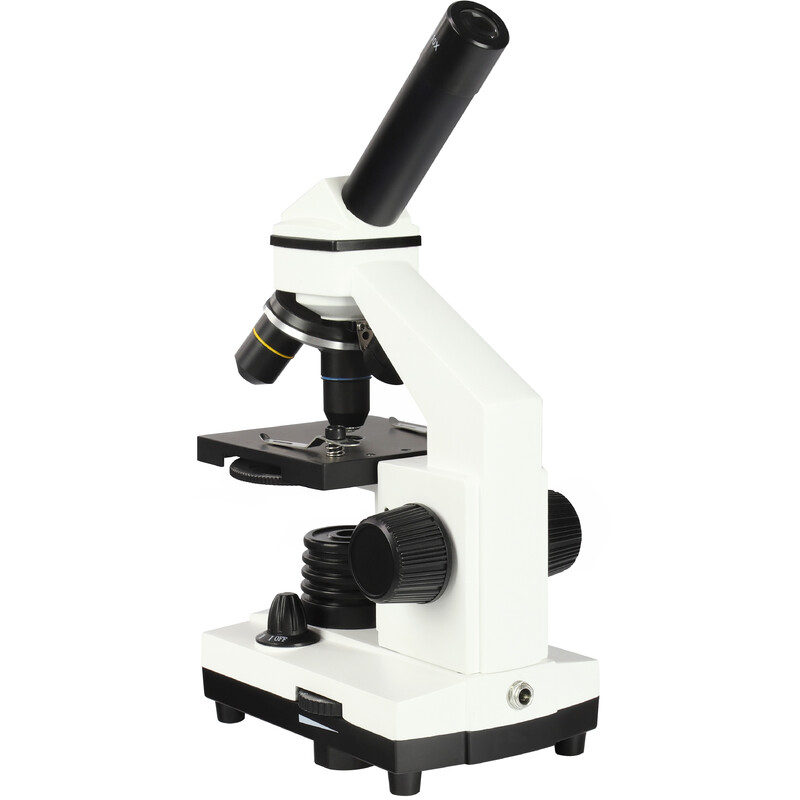 Trojobjektívová revolverová hlava s achromatickými objektívmi poskytuje čistý, dobre korigovaný obraz v rozsahu zväčšení 40×–400×. Okulár WF 10× ponúka pohodlné zorné pole aj pri dlhšom pozorovaní.