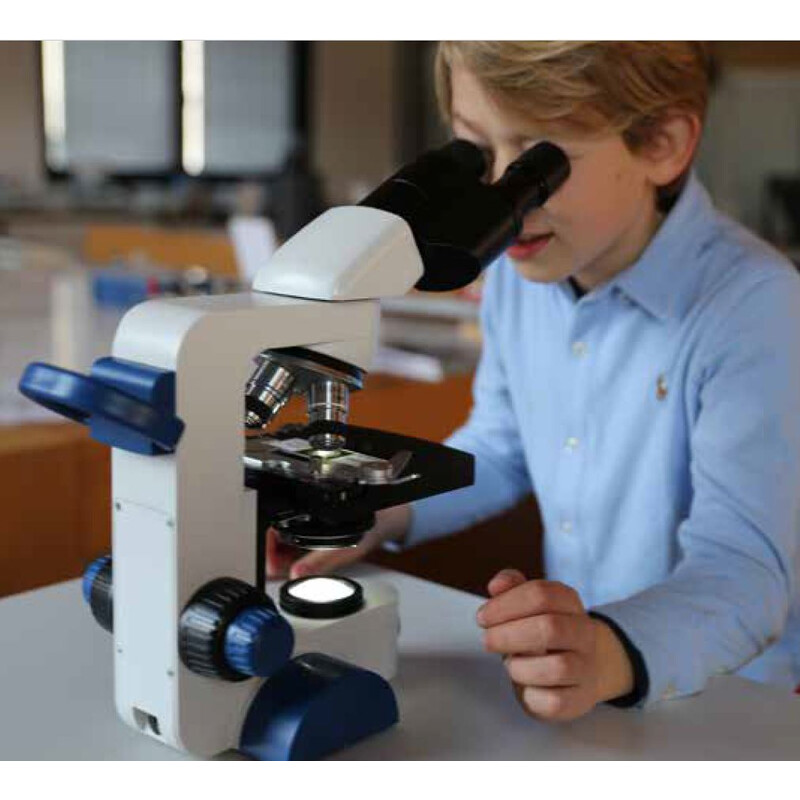Binokulárny biologický mikroskop s achromatickými objektívmi, mechanickým stolíkom StagErase™ a prechádzajúcim LED osvetlením pre výučbu a základnú laboratórnu mikroskopiu