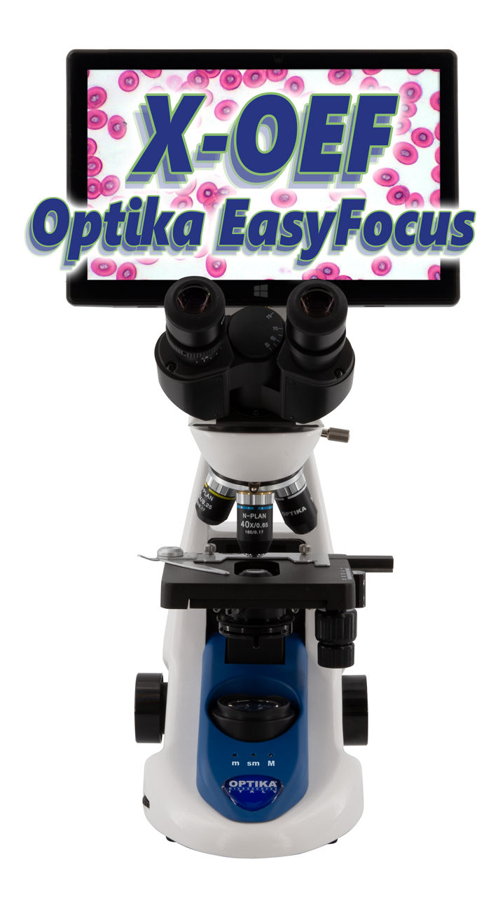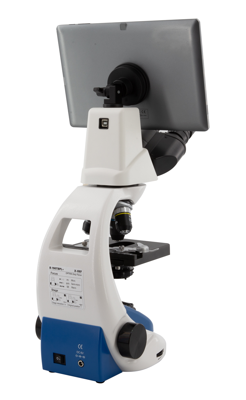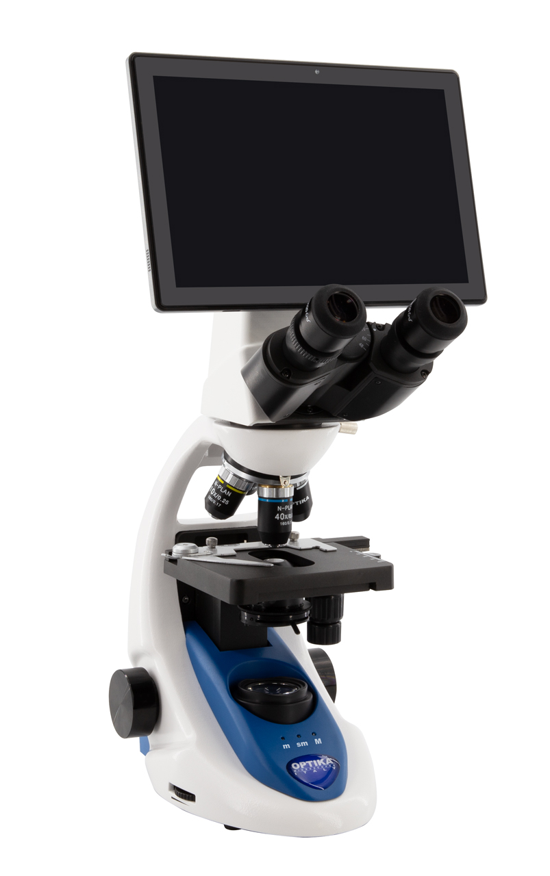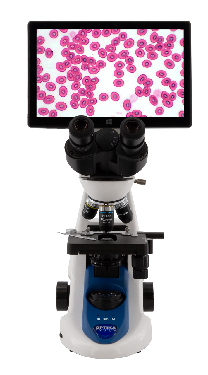 Digitálna zobrazovacia jednotka s 10,1" dotykovým tabletom umožňuje okamžite sledovať mikroskopický obraz na displeji, ukladať snímky alebo video a jednoducho ich analyzovať. Tablet funguje ako plnohodnotný počítač so systémom Windows, takže mikroskop je pripravený na prácu bez ďalšieho vybavenia.
