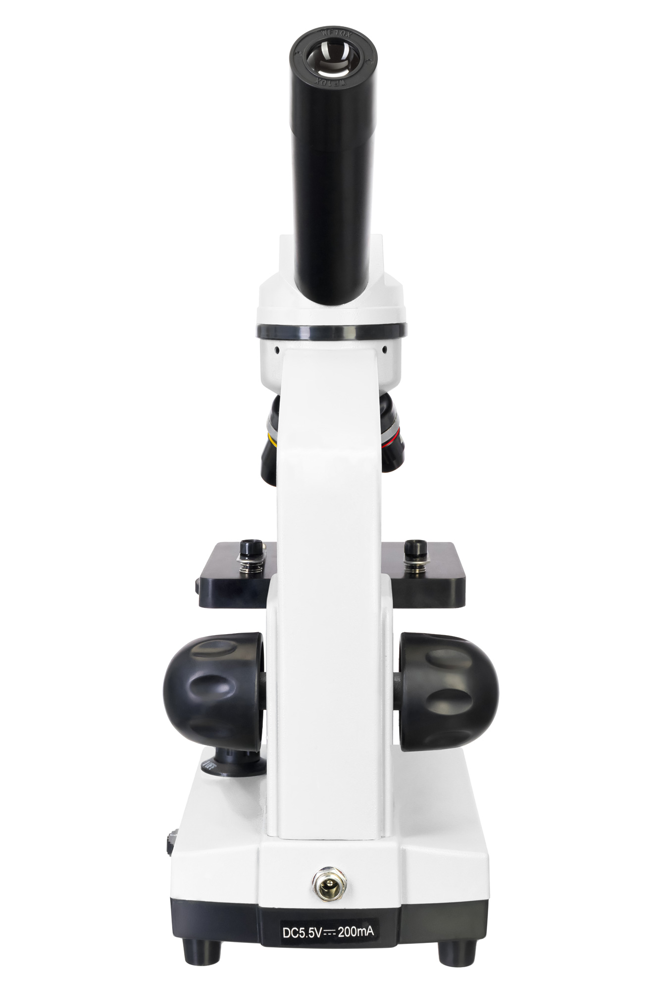 Telo mikroskopu je vyrobené z odolného plastu, ktorý znižuje hmotnosť a uľahčuje manipuláciu. Monokulárna hlava je naklonená pod uhlom 45° pre pohodlné pozorovanie.