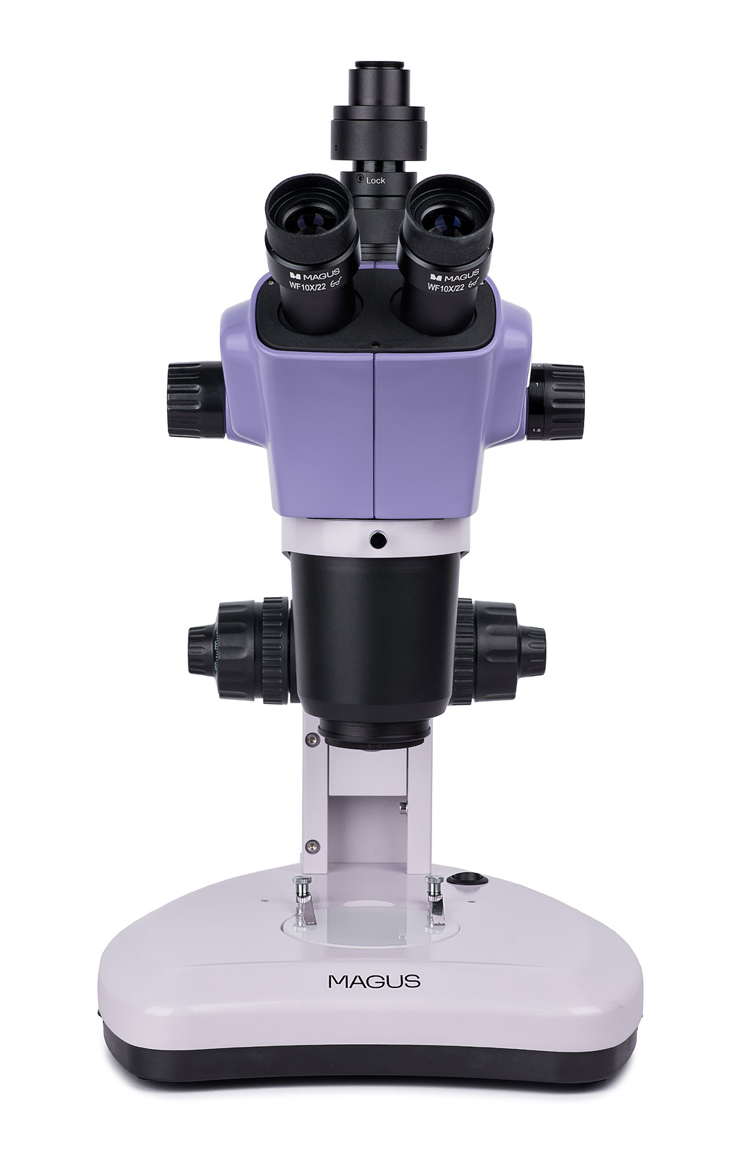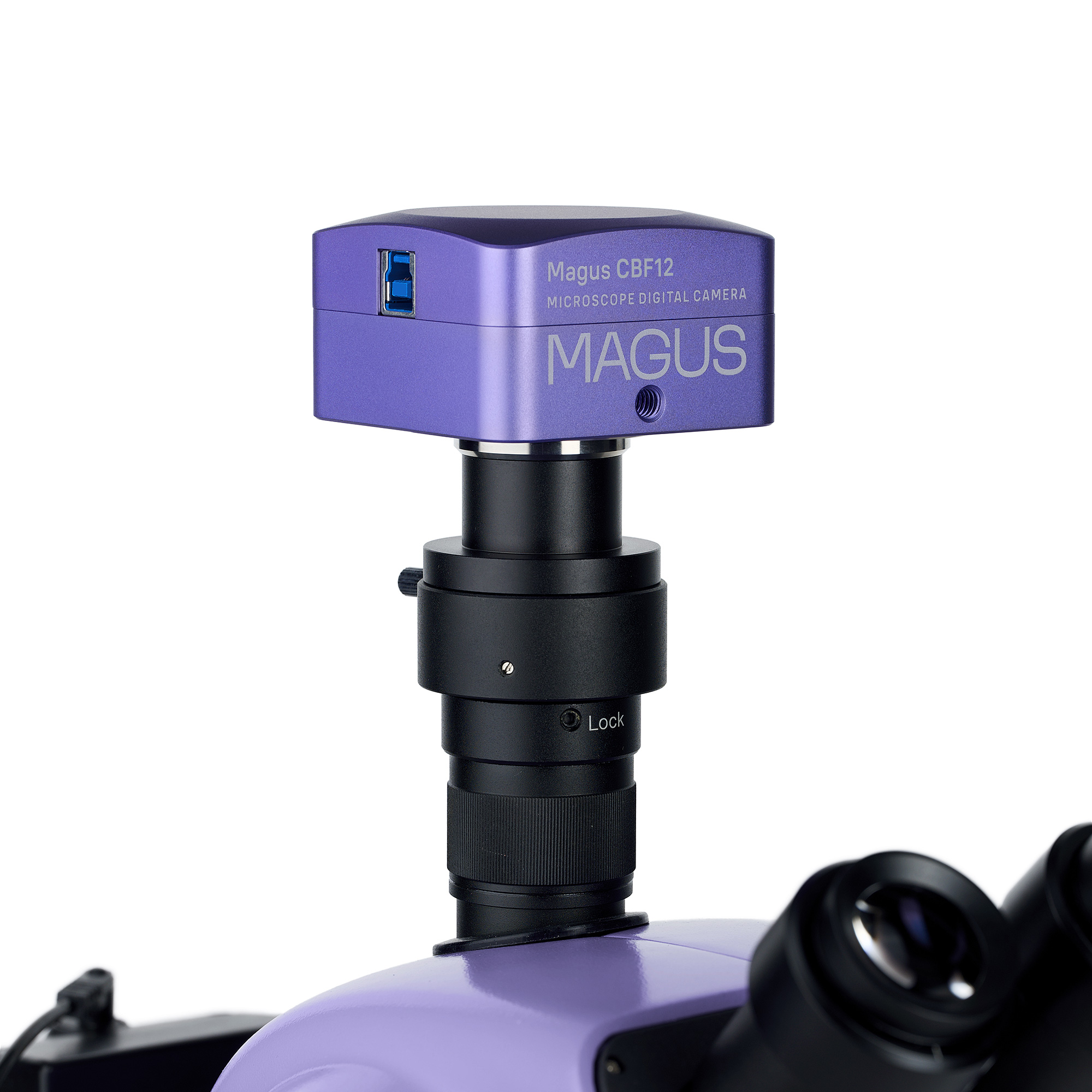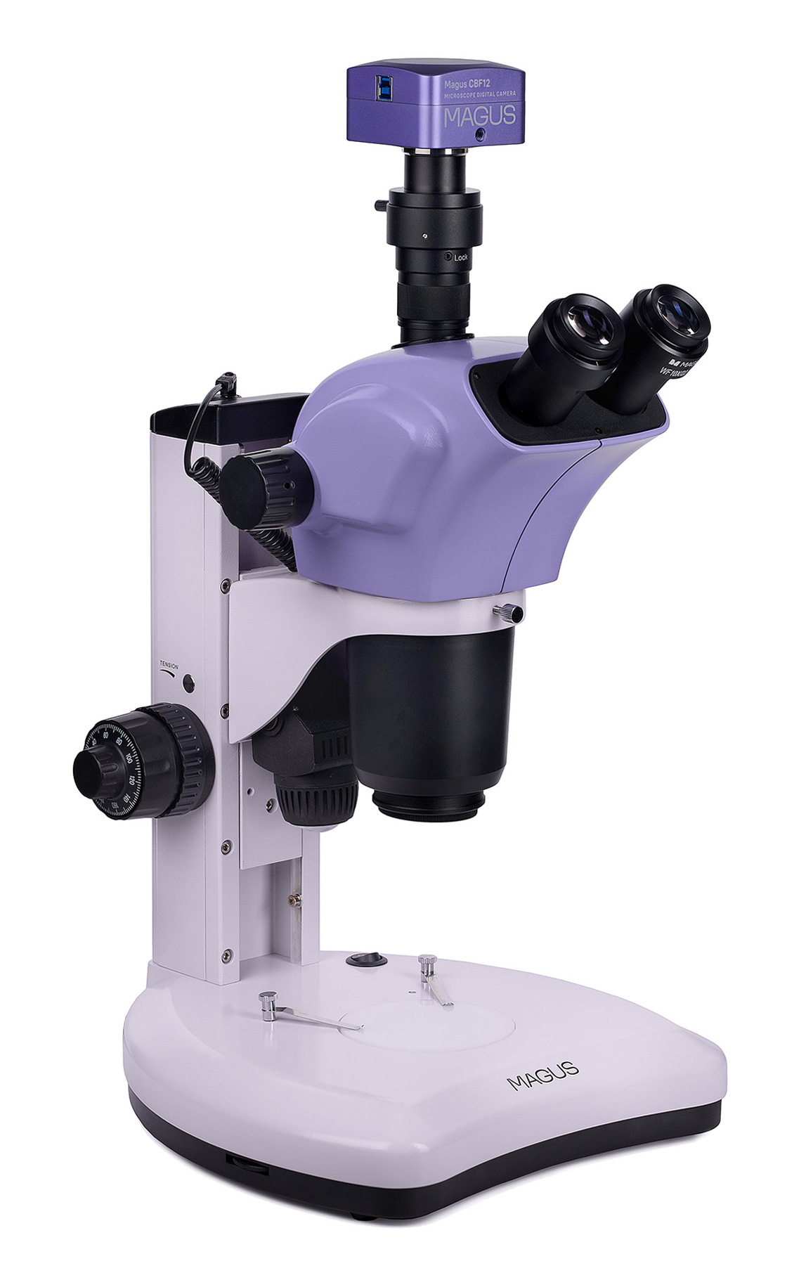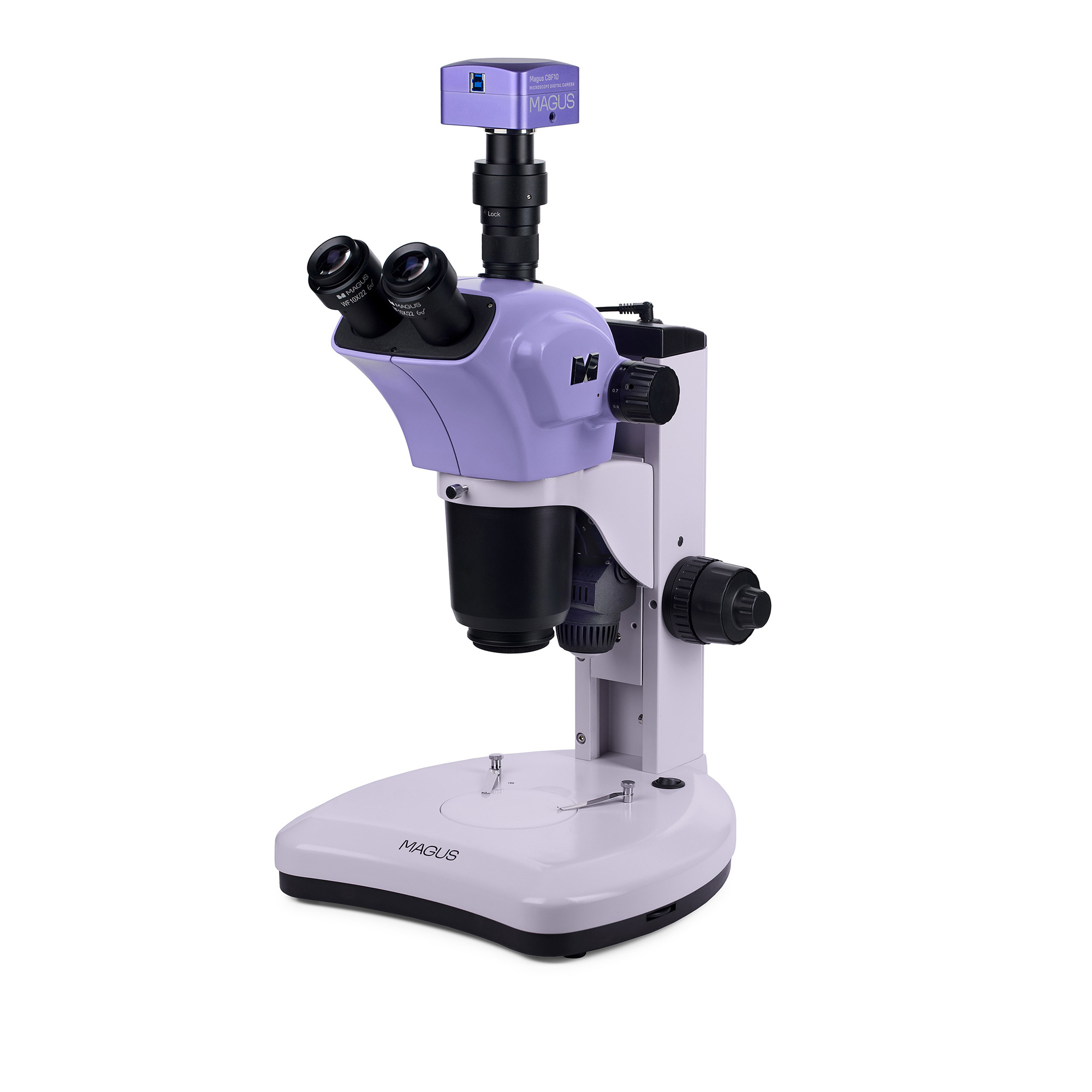 Trinokulárna hlavica s rotáciou o 360° umožňuje pohodlné pozorovanie aj integráciu digitálnej kamery pomocou C-mount adaptéra (je súčasťou balenia). Mikroskop je kompatibilný s digitálnou kamerou MAGUS CBF12, ktorá umožňuje snímanie fotografií, videozáznam aj prenos obrazu do počítača cez USB 3.0 rozhranie.