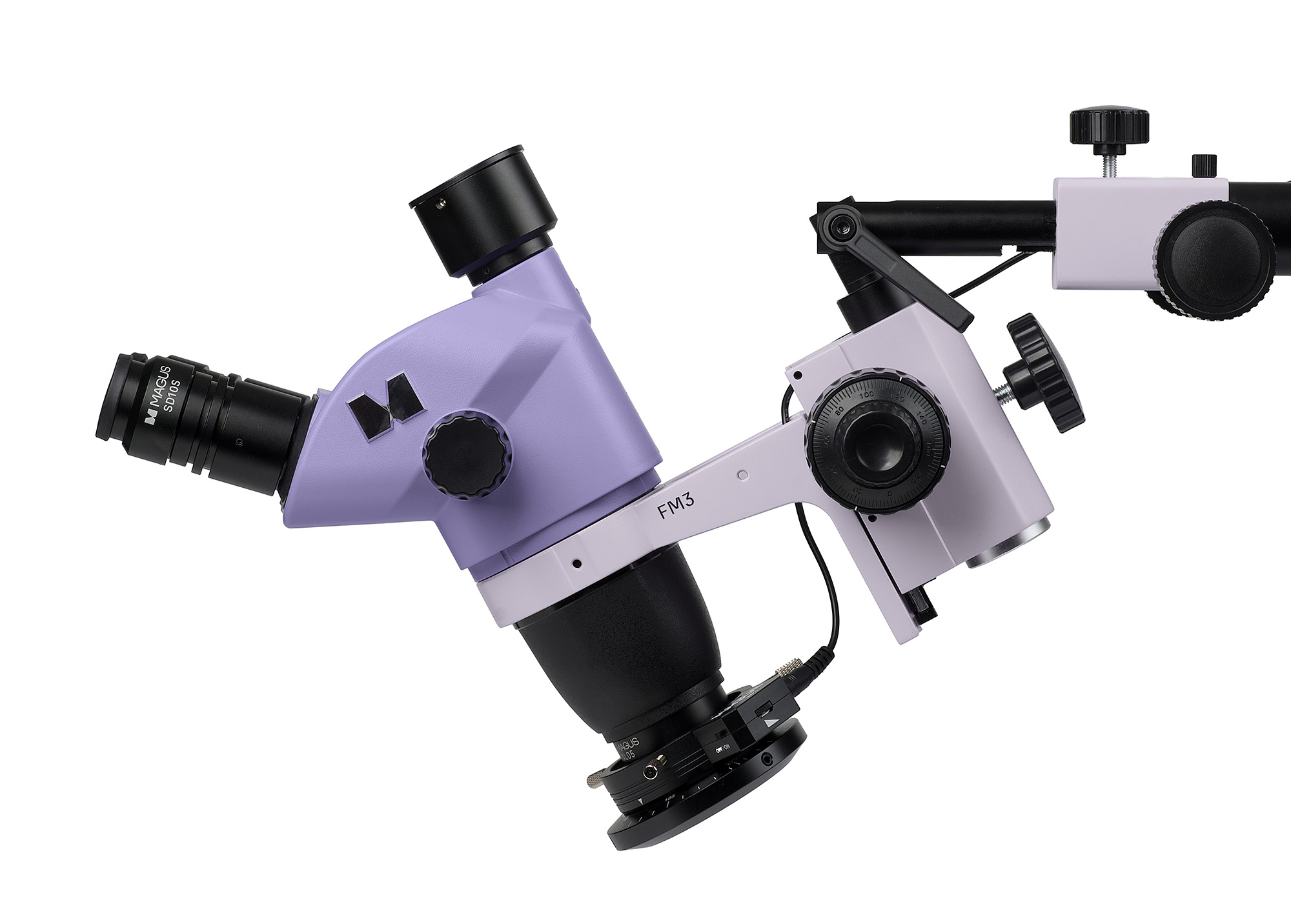 Univerzálny stojan MAGUS UT2 s masívnou základňou minimalizuje vibrácie a poskytuje veľký pracovný rozsah. Mikroposuv umožňuje presné horizontálne nastavenie hlavice a nastaviteľný uhol optickej osi zlepšuje komfort pri spájkovaní alebo kontrole zakrivených objektov.