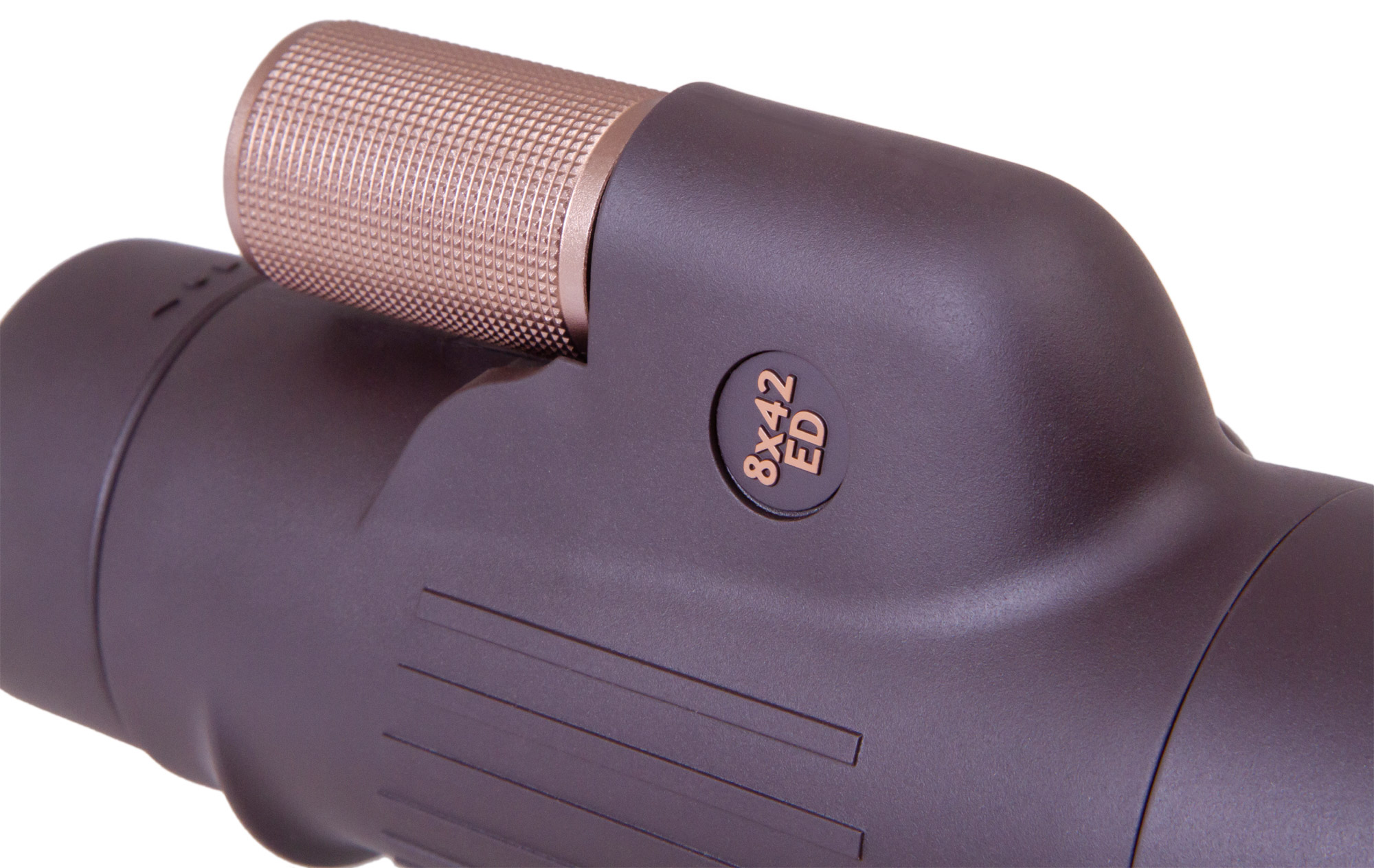 Optika s ultra nízkou rdisperziou znamená výrazné zníženie chromatizmu, zbavenie sa farebných nežiaducích haló, zlepšenie kontrastu a podania farieb. Viacvrstvová antireflexná úprava všetkých optických povrchov zvyšuje jas prenášaného obrazu, čo umožňuje pozorovanie aj pri slabom osvetlení. Najblížšia vzdialenosť zaostrenia tohto monokulárneho ďalekohľadu sú 2 metre, čo umožňuje študovať blízke objekty a používať monokulárny ďalekohľad v interiéri. Široké zorné pole je užitočné pri sledovaní rýchlo sa pohybujúcich objektov. Monokulárny ďalekohľad má tiež dlhý očný reliéf, ktorý umožňuje ppozorovania s okuliarmi.