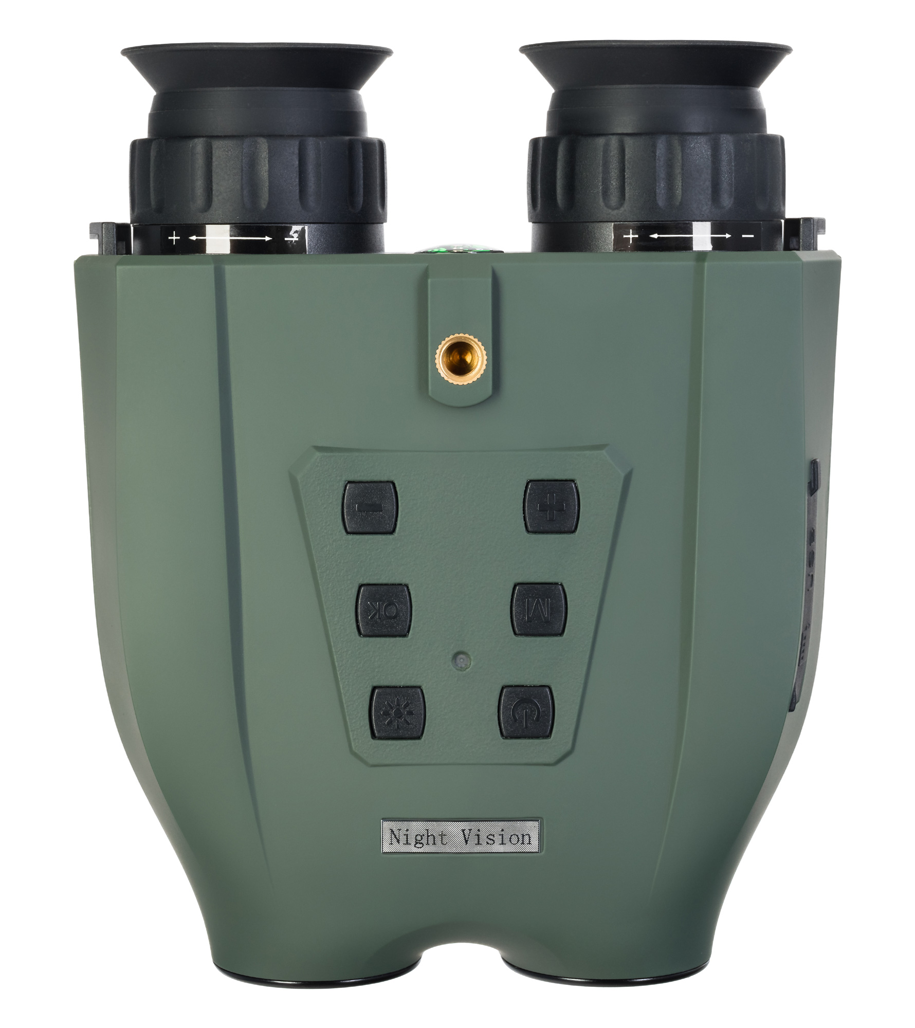 Telo ďalekohľadu je vyrobené z ľahkého, ale odolného ABS plastu s pogumovaným povrchom, ktorý chráni pred poškodením a zaisťuje pevný úchop. Ergonomický dizajn uľahčuje dlhodobé používanie. Zariadenie je napájané dvomi dobíjateľnými lítiovými batériami (700 mAh), ktoré zabezpečia 2–10 hodín prevádzky podľa použitia IR prísvitu. Nabíjanie prebieha cez USB kábel a adaptér (súčasť balenia). Ďalekohľad možno upevniť na statív alebo pripevniť na prilbu, čo rozširuje jeho možnosti použitia.