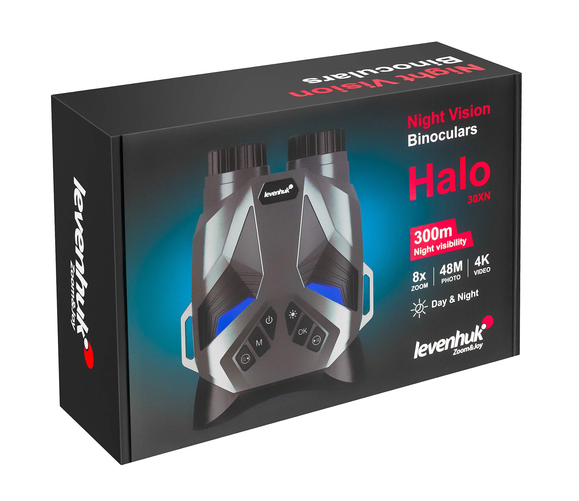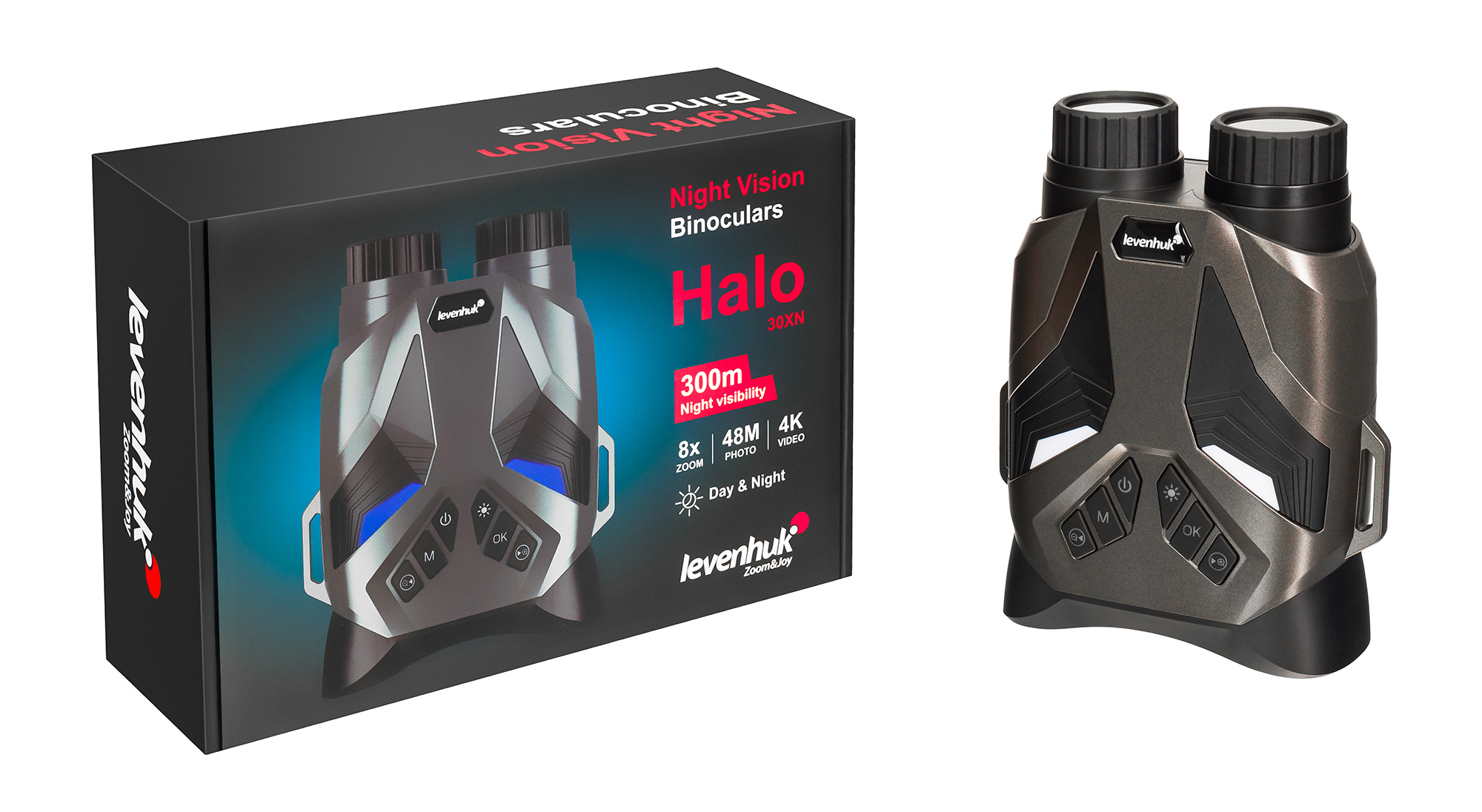 Levenhuk Halo 30XN je digitálny binokulárny ďalekohľad s nočným videním, ideálny pre poľovníkov, skautov, záchranárov aj cestovateľov – pre každého, kto potrebuje efektívne pracovať a skúmať svoje okolie vo dne aj v noci. Vďaka výkonnému optickému systému umožňuje sledovať vzdialené objekty aj krajinu s maximálnou presnosťou.