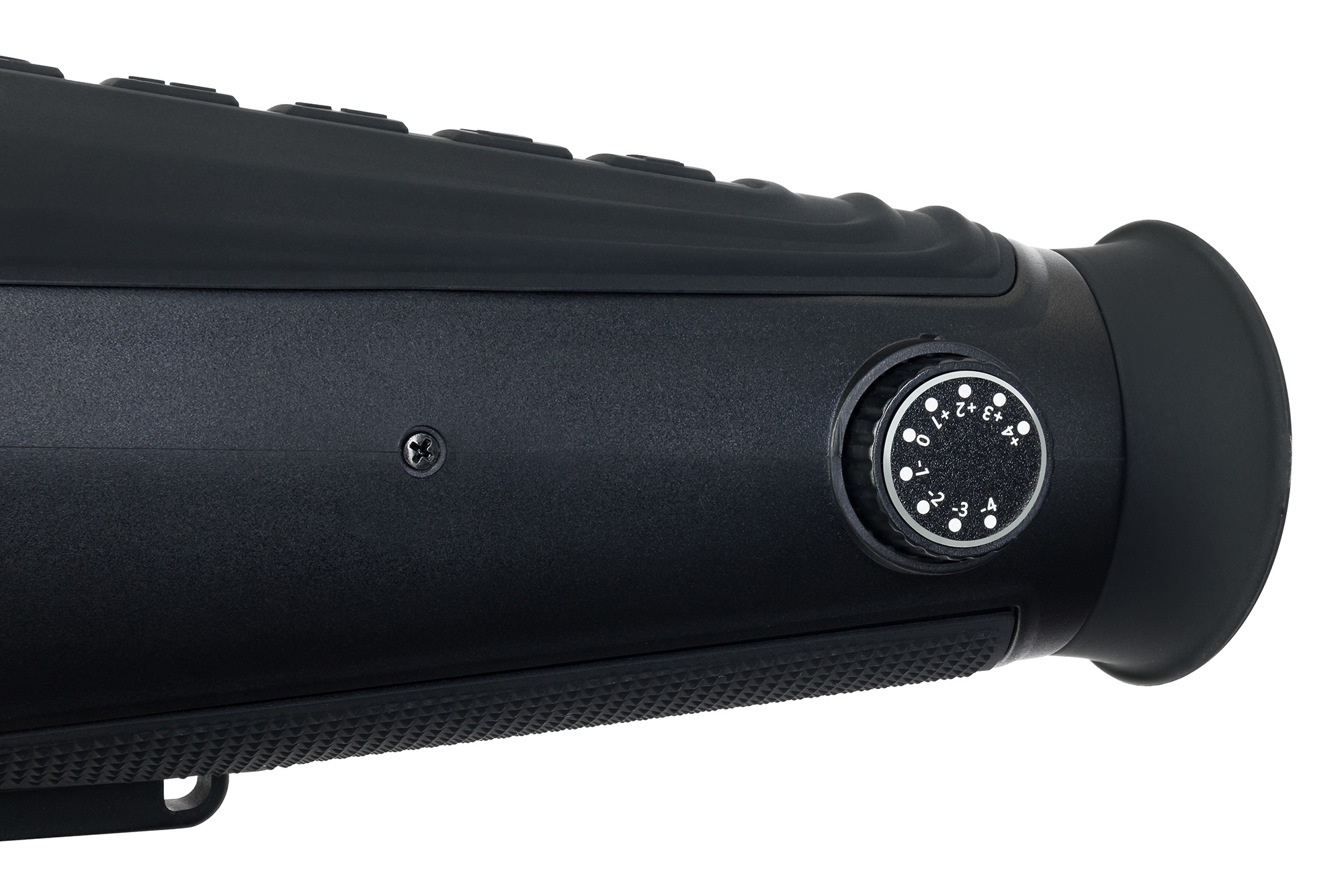 Pre krátkozrakých a ďalekozrakých používateľov je monokulár vybavený krúžkom dioptrickej korekcie. Na zaostrenie na určitú vzdialenosť slúži zaostrovací krúžok: tieto prvky pomáhajú udržať obraz jasný a ostrý. Telo tohto modelu je vyrobené z plastu a kovu a potiahnuté silikónovou fóliou. Stupeň krytia IP54 znamená, že prístroj možno používať v prašných oblastiach a v blízkosti striekajúcej vody. Monokulár možno používať pri teplotách okolia od -20 do +50 °C; skladovacie teploty sa pohybujú od -30 do +60 °C.
