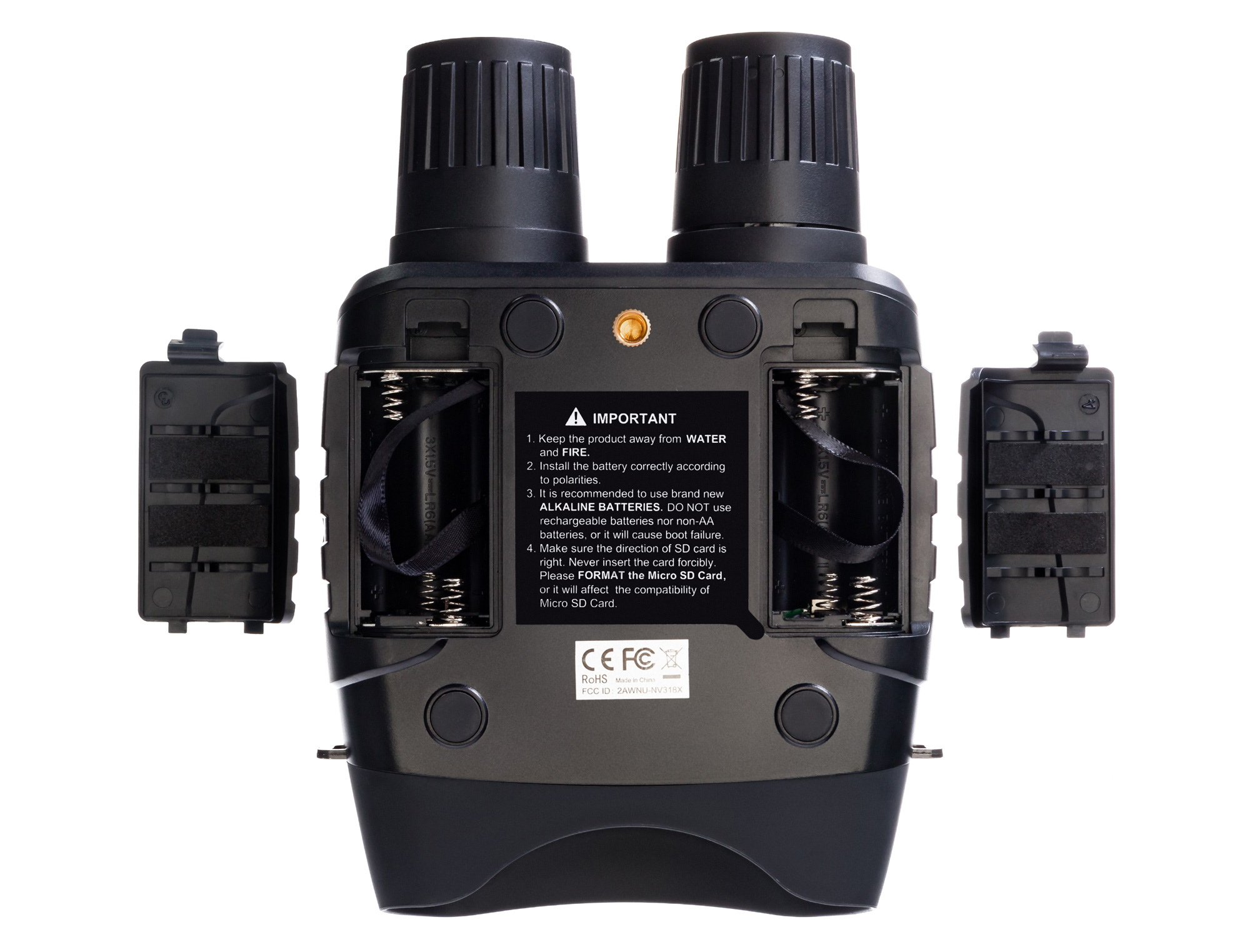 Binokulár má ergonomické telo s ochranou proti vlhkosti, prachu a drobným kvapkám. Napája sa pomocou 6 ks AA batérií, ktoré umožňujú 4–10 hodín prevádzky (v závislosti od použitia IR prísvitu). Batérie sú jednoducho vymeniteľné a v prípade potreby ich môžete nahradiť novými aj v teréne.