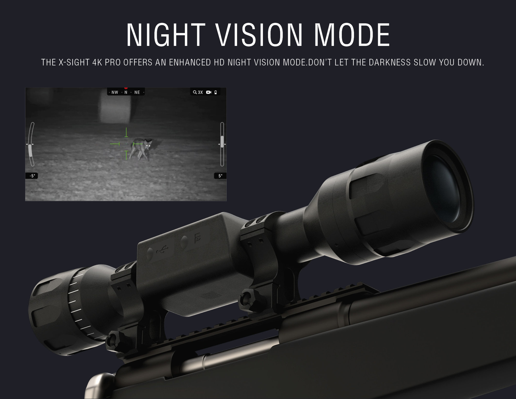 ATN X-Sight QHD LTV poskytuje priebežné informácie o okolí a umiestnení zariadenia v 3. priestorovej osi. Systém pracuje rýchlo a bezchybne za každých podmienok. Nočné videnie zahŕňa:
