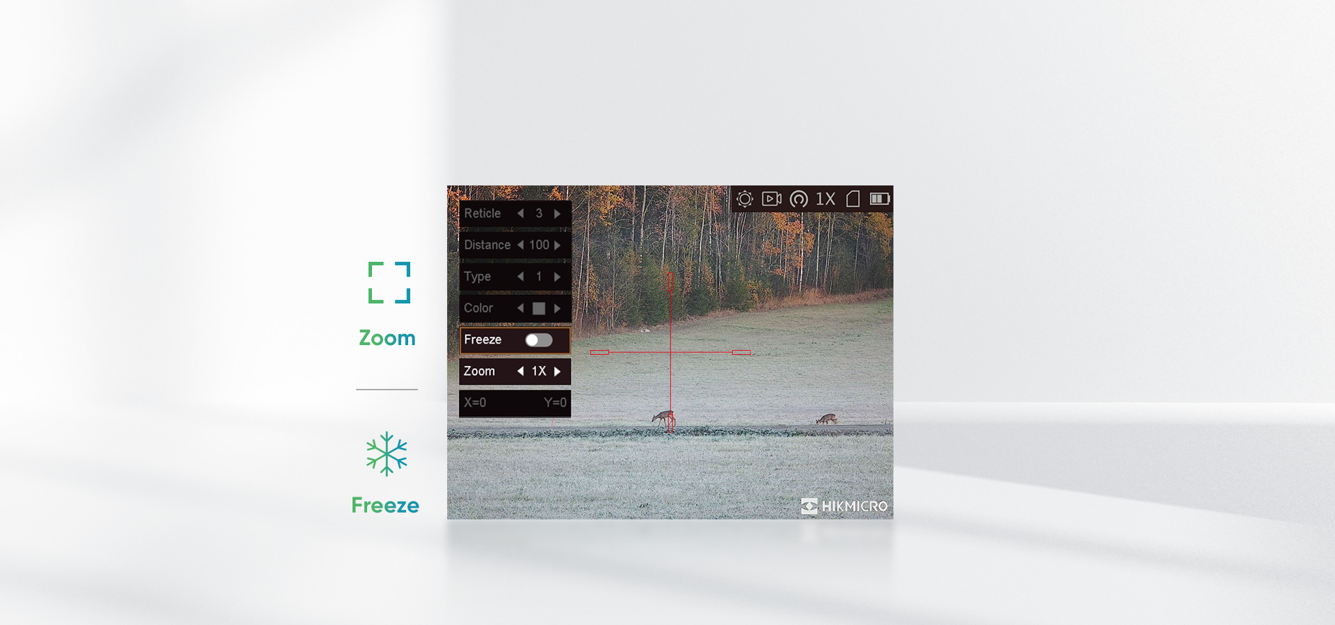 Nulovanie s funkciou Zoom & Freeze zlepšuje presnosť streľby.