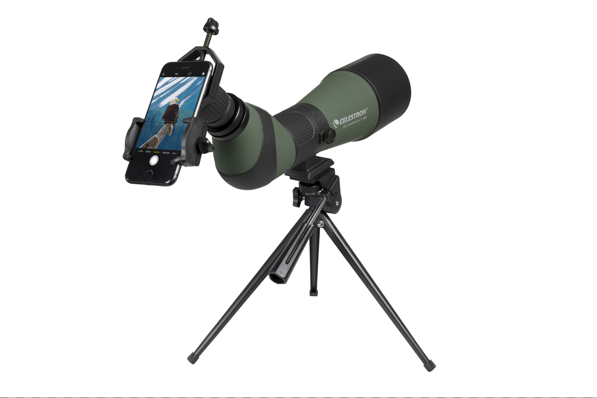 Teilen Sie Ihre schönsten Entdeckungen mit Freunden und Familie, indem Sie das LandScout Spektiv mit dem mitgelieferten Smartphone-Adapter verbinden. Dieses Zubehörteil verbindet jedes Smartphone mit dem LandScout-Okular (oder jedem anderen Okular mit einem Außendurchmesser von maximal 45 mm, wie z. B. einem Fernglas- oder Teleskopokular).
