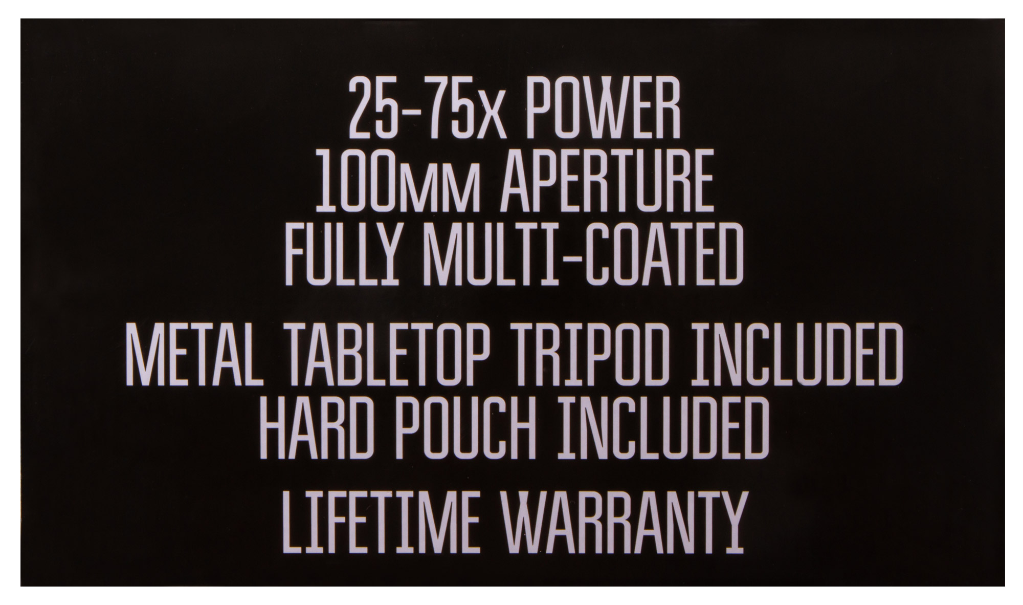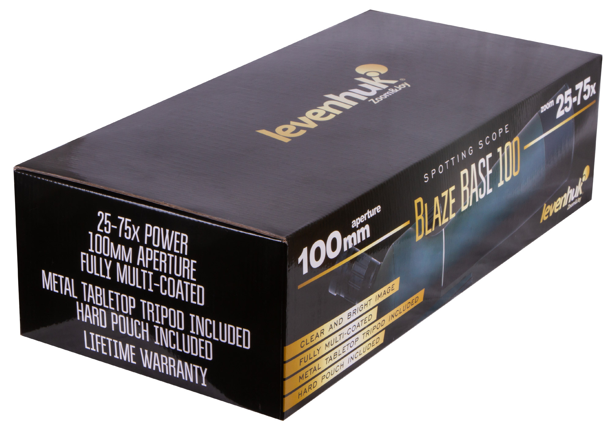 Levenhuk Blaze BASE 100 je pozorovací ďalekohľad so 100 mm objektívom, ktorý je skvelý na štúdium prírodnej a mestskej krajiny. Jeho apertúra je dostatočne veľká pre pozorovania nielen pri jasnom slnku, ale aj v zamračenom počasí a tesne pred úsvitom, kedy optické prístroje s malou apertúrou zvyčajne zlyhávajú. Pozorovací ďalekohľad umožňuje zvoliť si zväčšenie v rozsahu od 25x do 75x - jednoduchým otáčaním zaostrovacieho kolieska môžete zmeniť zaostrenie zo vzdialeného pohľadu na blízky objekt.