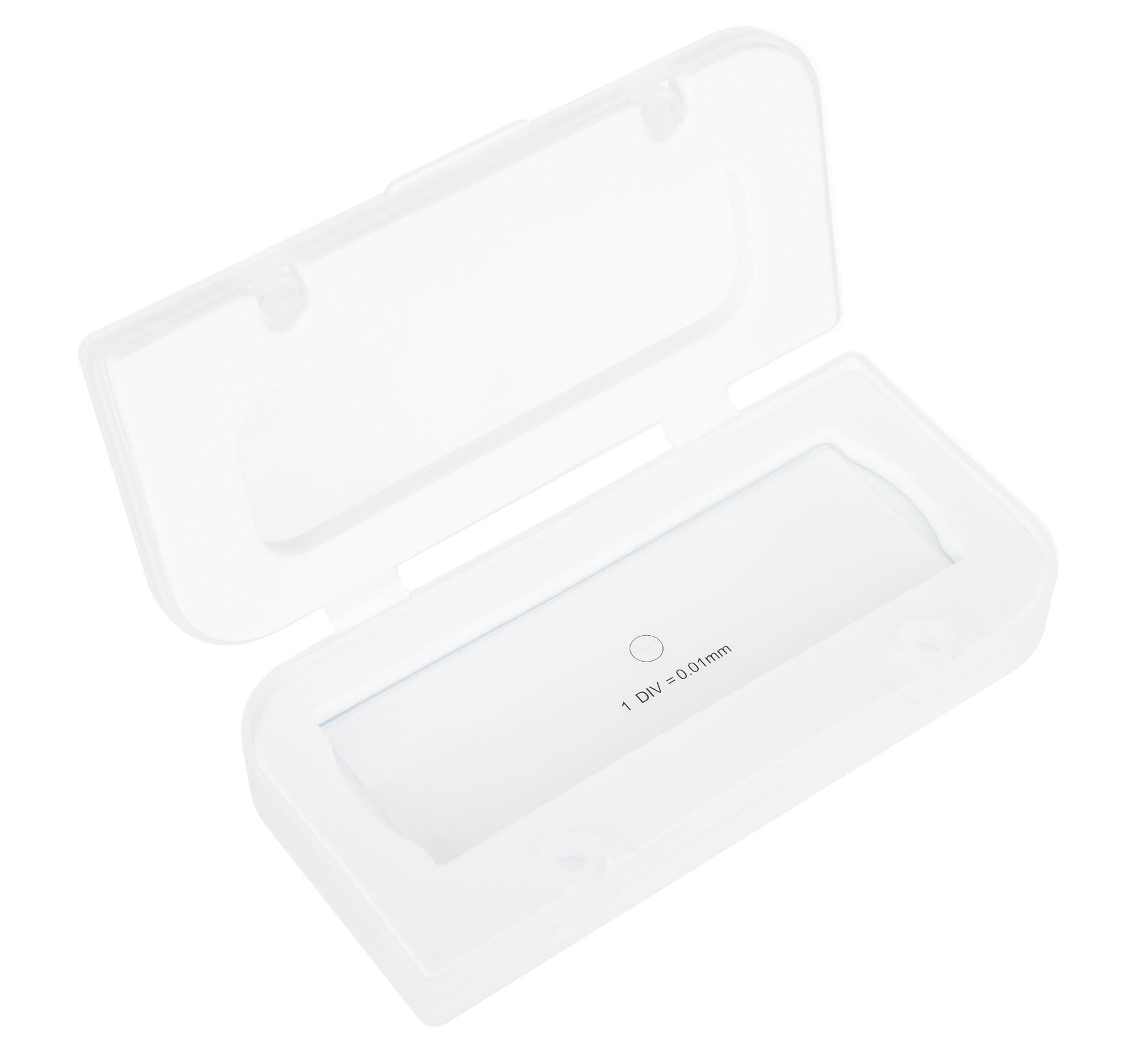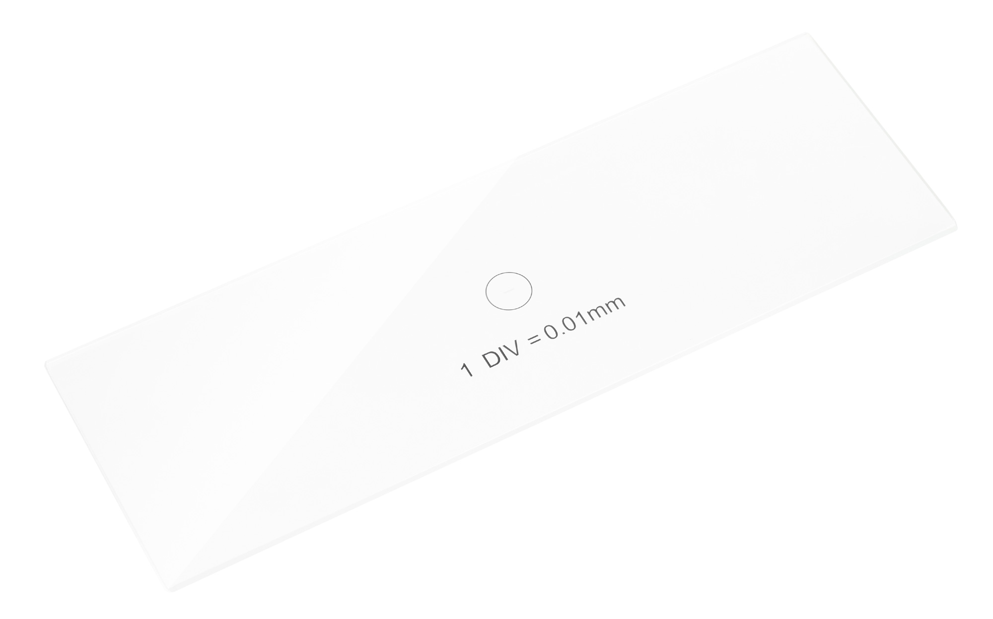 Kalibračné sklíčko Levenhuk 1 je priehľadné sklo štandardnej veľkosti s vytlačenou mikrometrickou stupnicou. Stupnica má 100 dielikov a deliaca hodnota je 0,01 mm.