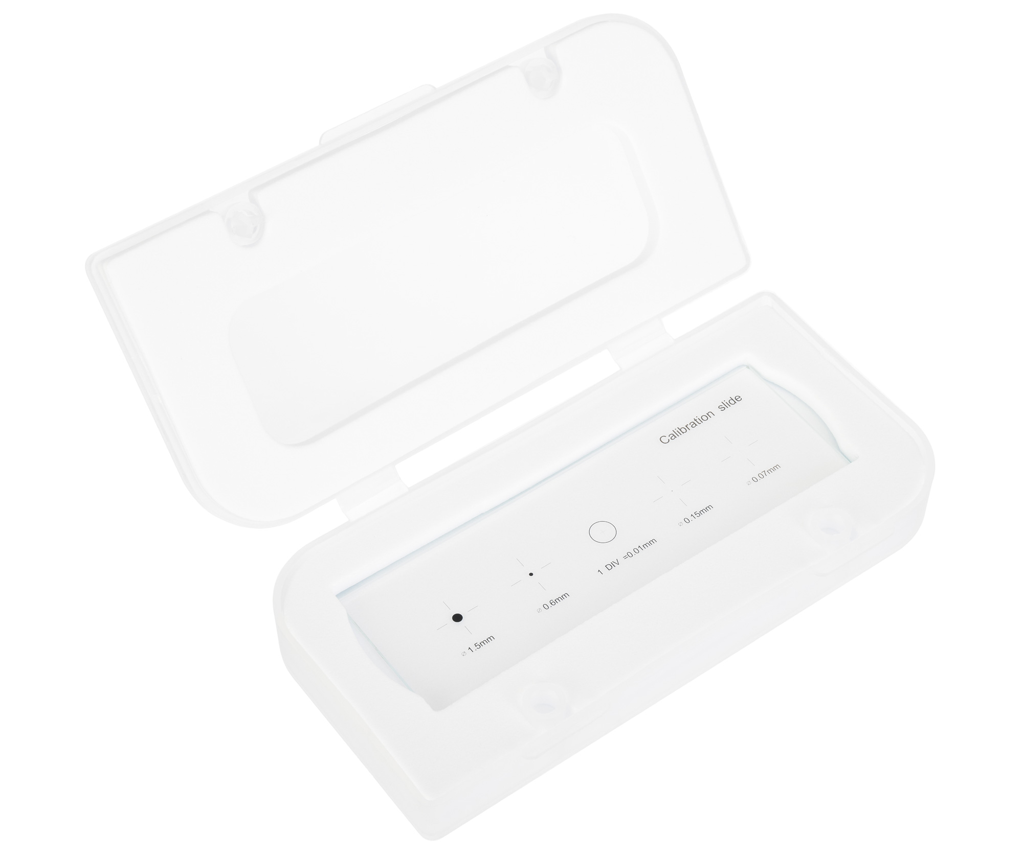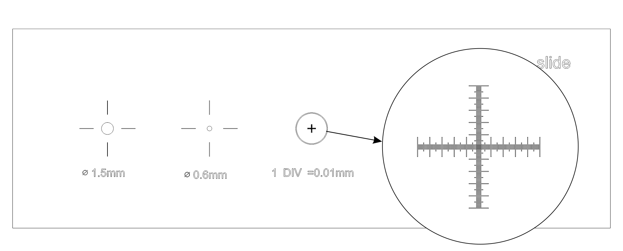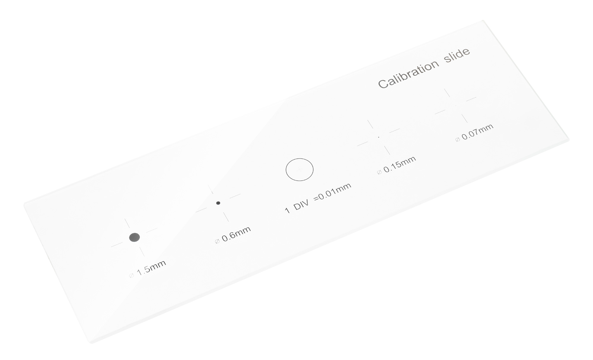 Toto je snímka, ktorá sa používa na kalibráciu programu na analýzu obrazu. Je vyrobené z optického skla, má niekoľko kruhov rôznych priemerov (1,5 mm, 0,6 mm, 0,15 mm a 0,07 mm) a mikrometrickú stupnicu s delením 0,01 mm. Stupnica má 100 dielov a jej celková dĺžka je 1 mm.