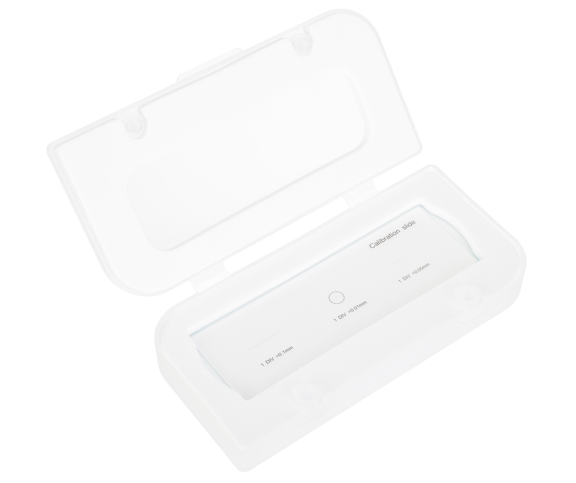 Na nastavenie programu na analýzu obrazu je potrebné kalibračné (mikrometrické) sklíčko. Používa sa na určenie korekčného faktora, ktorý umožňuje zvýšiť presnosť merania. Sklíčko Levenhuk 3 je vhodné pre mikroskopy akejkoľvek značky, je vyrobené z optického skla a má štandardné rozmery.
