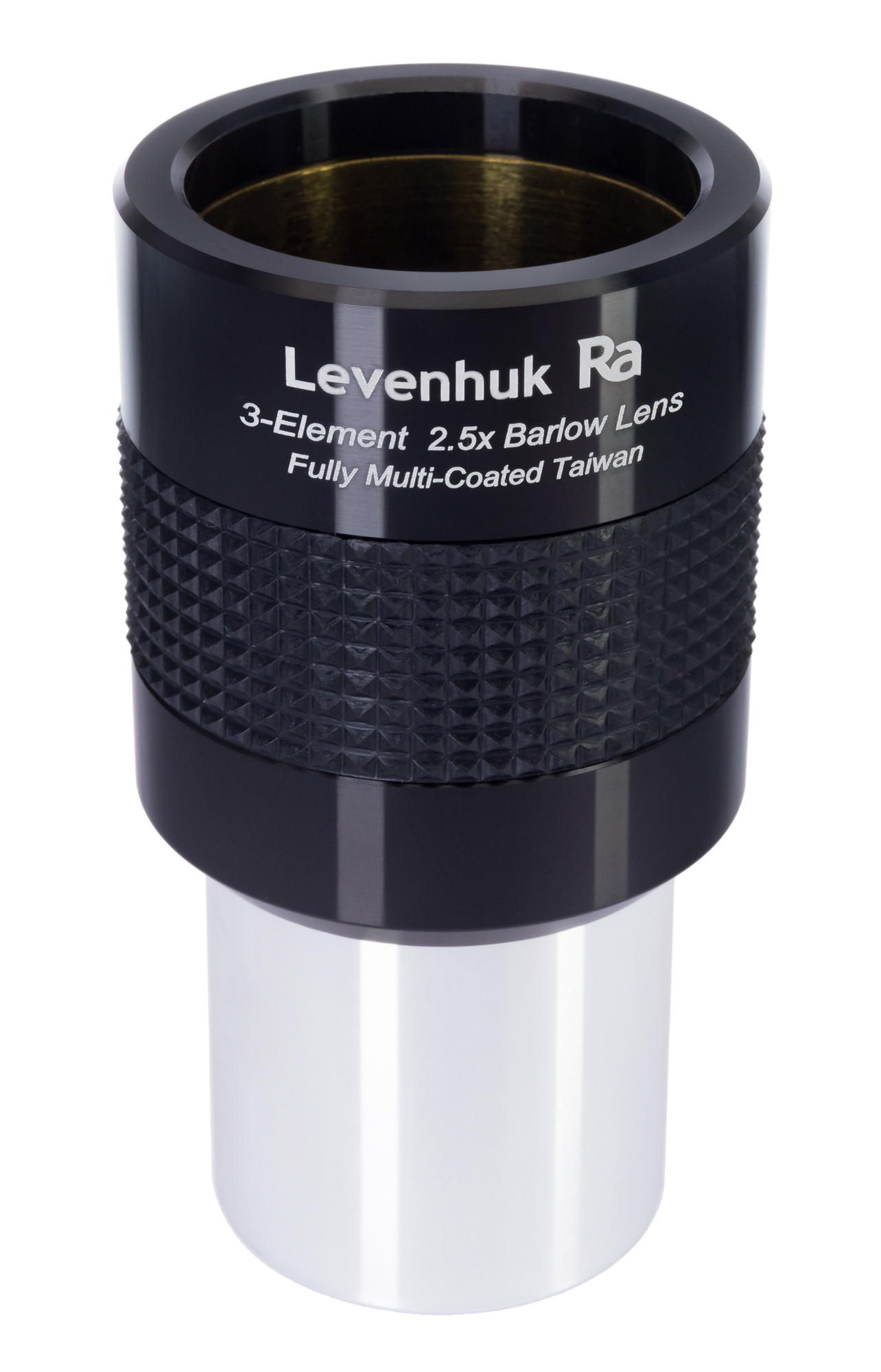 Šošovka Barlow Levenhuk 2,5x je príslušenstvo, ktoré zvyšuje ohniskovú vzdialenosť a zväčšenie vášho teleskopu 2,5x. Inštaluje sa priamo do zaostrovača (pred okulár). So štandardným upínacím priemerom 1,25" kompatibilita nebude problémom. Použitie šošovky Barlow rýchlo úsporne rozšíri rozsah dostupných zväčšení a spestrí astronomické pozorovania.