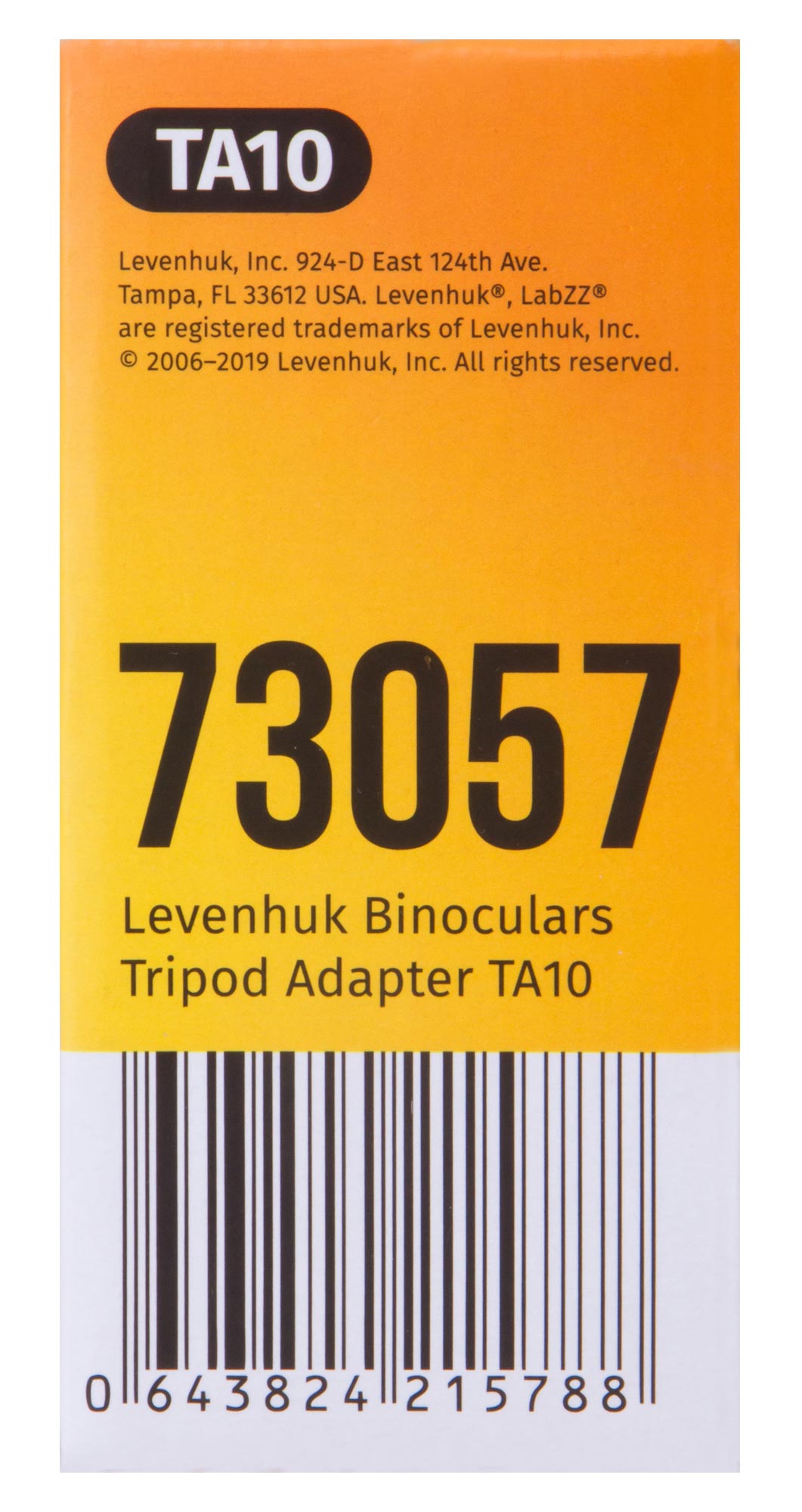 Na hornej časti adaptéra sa nachádza závit 1/4" a v spodnej časti sa nachádza závitová zásuvka 1/4". Adaptér Levenhuk TA10 je kompatibilný s väčšinou binokulárnych ďalekohľadov a statívov vyrábaných rôznymi výrobcami.