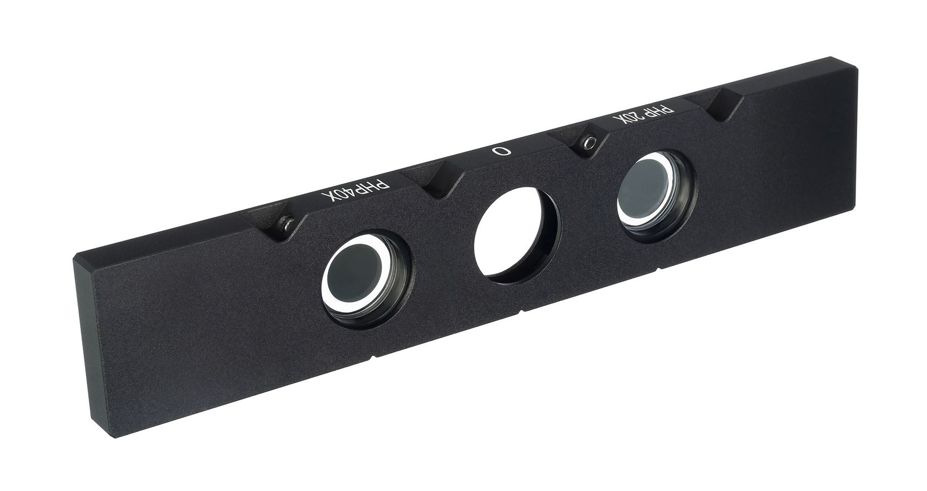 Sklíčko má tri otvory. Bočné otvory majú zabudované vložky: jeden sa používa na prácu s objektívom so zväčšením 20x a druhý na objektív so zväčšením 40x. Stredový otvor nemá žiadnu vložku a používa sa na prácu metódou jasného poľa. Posuvník sa inštaluje do štrbiny kondenzátora mikroskopu. Po inštalácii musia byť otvory jazdca zarovnané s fázovými krúžkami objektívu. Na tento účel sa používa pomocný centrovací teleskop, ktorý je súčasťou súpravy mikroskopu MAGUS Bio V300.