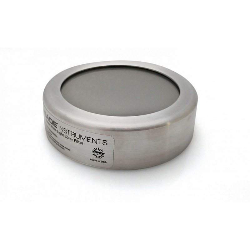 Nové slnečné filtre Meade s bielym svetlom sú dokonalým príslušenstvom na premenu vášho teleskopu na BEZPEČNÝ spôsob pozorovania Slnka! Dostupné v 10 rôznych veľkostiach na pozorovanie a zobrazovanie Slnka v bielom svetle. Naše slnečné filtre s hliníkovým puzdrom a reflexným sklom blokujú 99,999 % dopadajúceho svetla na ochranu a majú certifikát ISO, ktorý zaručuje bezpečnosť pri správnom používaní. Ľahko sa pripevňujú pomocou troch skrutiek (sú súčasťou balenia).