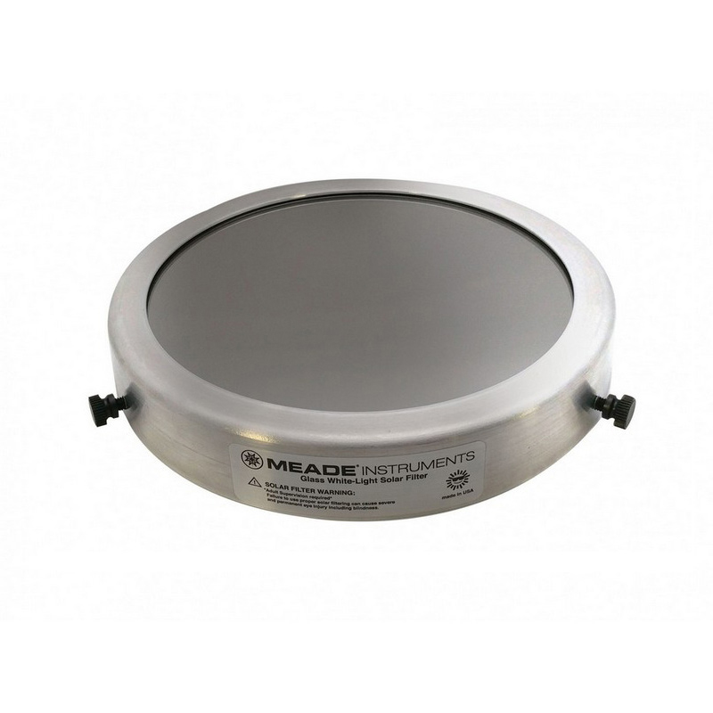 Nové slnečné filtre Meade s bielym svetlom sú dokonalým príslušenstvom na premenu vášho teleskopu na BEZPEČNÝ spôsob pozorovania Slnka! Dostupné v 10 rôznych veľkostiach na pozorovanie a zobrazovanie Slnka v bielom svetle. Naše slnečné filtre s hliníkovým puzdrom a reflexným sklom blokujú 99,999 % dopadajúceho svetla na ochranu a majú certifikát ISO, ktorý zaručuje bezpečnosť pri správnom používaní. Ľahko sa pripevňujú pomocou troch skrutiek (sú súčasťou balenia).
