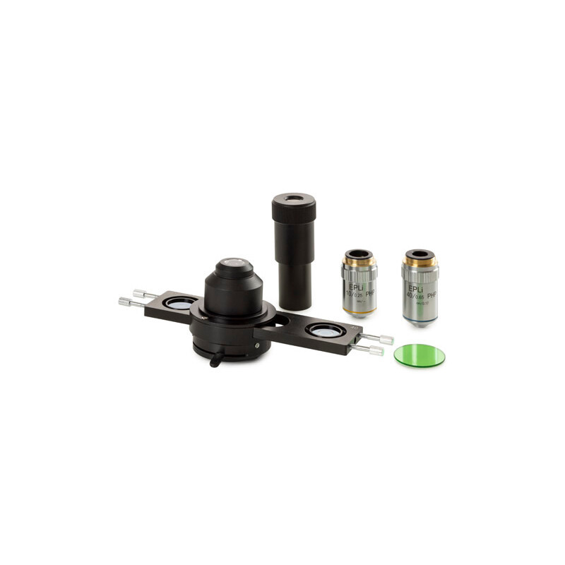 Sada fázového kontrastu s Abbeho kondenzorom a štrbinou pre posuvník pre objektívy E-Plan EPLPHi 10/S40x s korekciou na nekonečno (IOS) s fázovým kontrastom, posuvník s fázovými krúžkami 10 a 40x, ďalekohľad a zelený filter