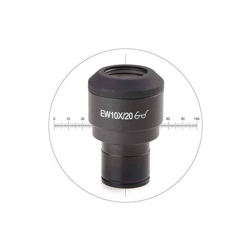 EWF okulár 10x/20 mm s mikrometrom 10/100 a krížom, pre tubus Ø 23,2 mm.