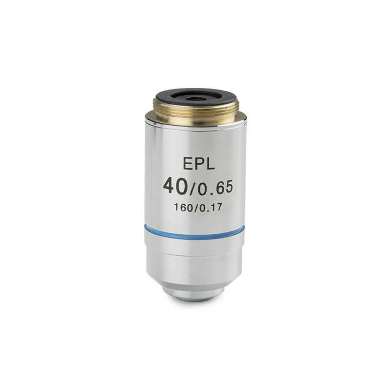 Objektív E-plan EPL S40x/0,65, pracovná vzdialenosť 0,45 mm a korigované krycie sklo 0,17 mm.