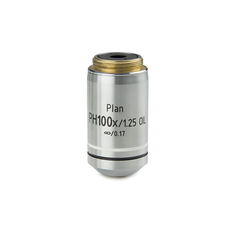 Objektív s fázovým kontrastom PLPHi S100x/1,25 s olejovou imerziou, korekcia nekonečna IOS, pracovná vzdialenosť 0,13 mm a korekcia krycieho skla 0,17 mm.