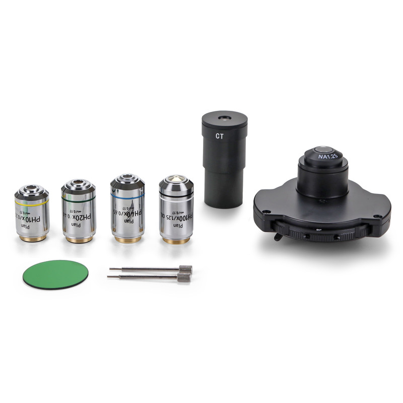 Zernikeho súprava fázového kontrastu PLPHi 10x/20x/40x/100x IOS (s korekciou na nekonečno), s polohou jasného a tmavého poľa.