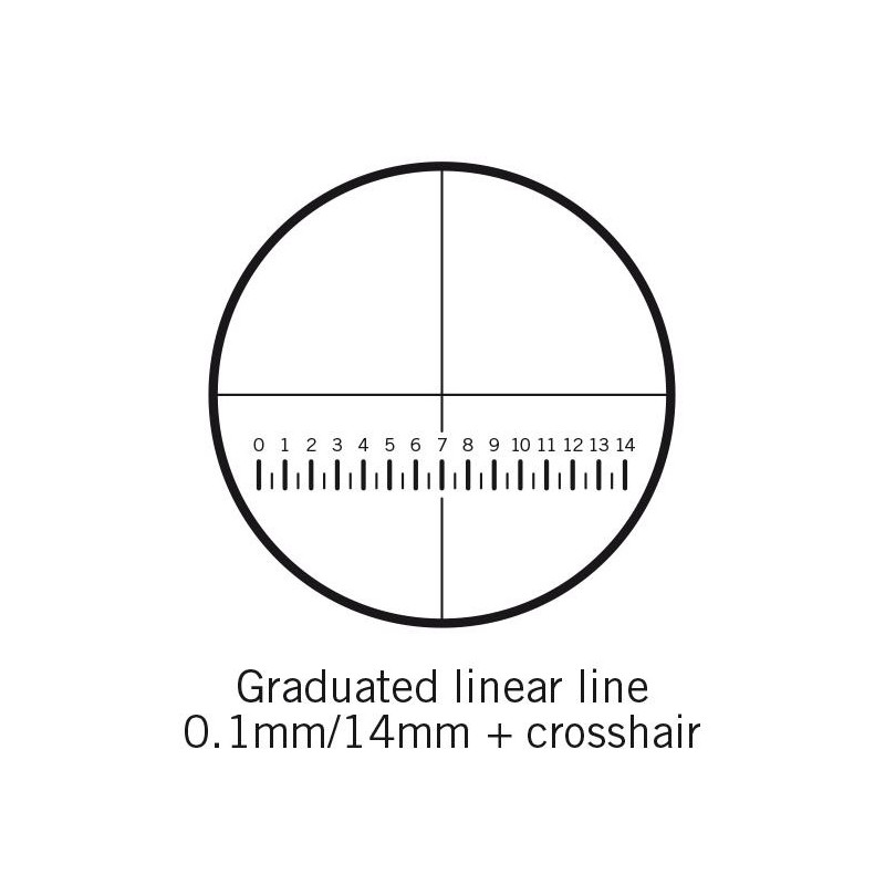 Motic Mikrometerstrichplatte Strichplatte Skala (14mm in 140 Teilen) und Fadenkreuz, (Ø25mm)
