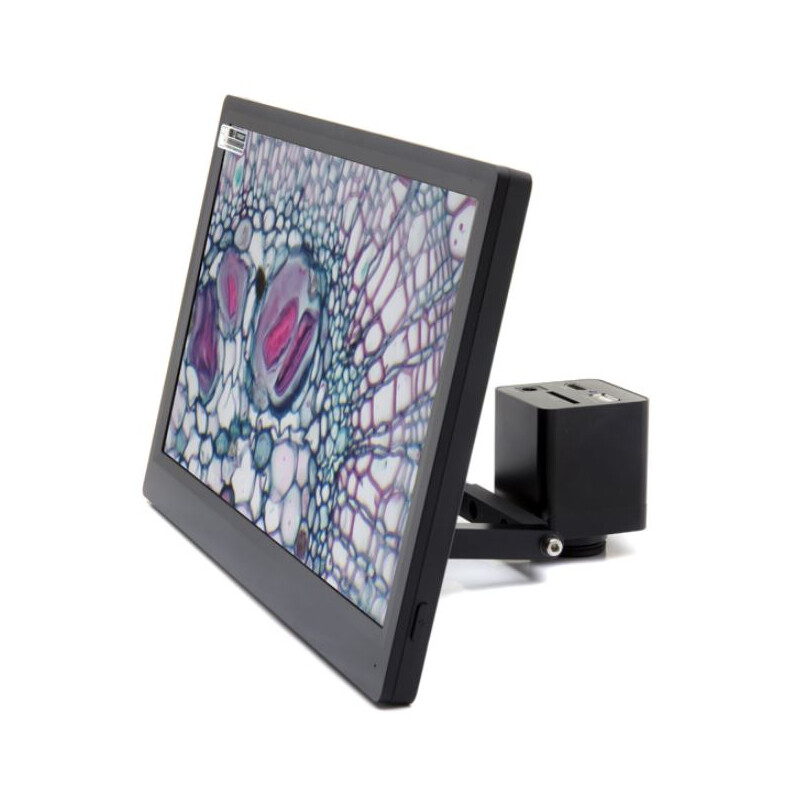 Balík "všetko v jednom", ktorý šetrí miesto, vrátane 11,5″ monitora Full HD s funkciou naklápania a používateľsky prívetivej kamery HD s rozlíšením 1080p, 2 MP, snímačom CMOS a pripojením HDMI, odporúčame pre jeho jednoduché ovládanie, nie je potrebná inštalácia softvéru so zachytávaním snímok na kartu SD. Umožňuje jednoducho vykonávať merania vzoriek alebo ich častí pomocou série nástrojov prostredníctvom softvéru, ako sú napríklad čiary, uhly a mnohé ďalšie. Podporuje aj ukladanie do programu Excel. Kompaktné rozmery, umožňujúce naklápanie a nastavovanie obrazovky na zabezpečenie správneho držania tela a odstránenie únavy počas pozorovania. Pripojenie k trinokulárnemu tubusu mikroskopu akejkoľvek značky prostredníctvom špecializovaného adaptéra (treba zakúpiť samostatne). Bezdrôtová myš, SD karta a zabudovaný softvér v balení.