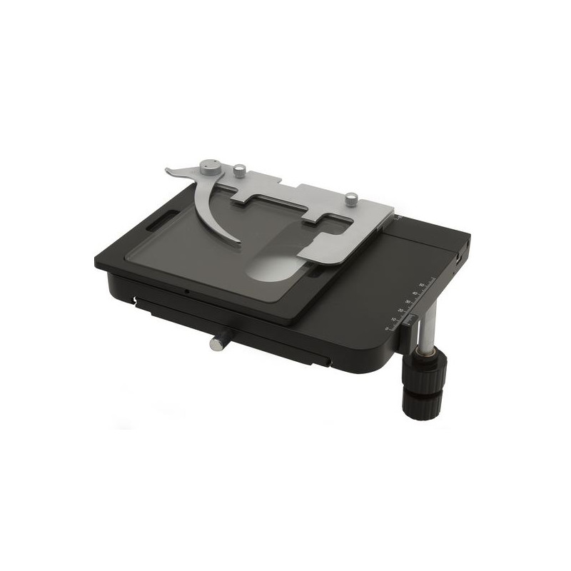 Popis: Dvojvrstvový mechanický stolík s koaxiálnymi translačnými gombíkmi. Sklenená vložka na metalografické vzorky.