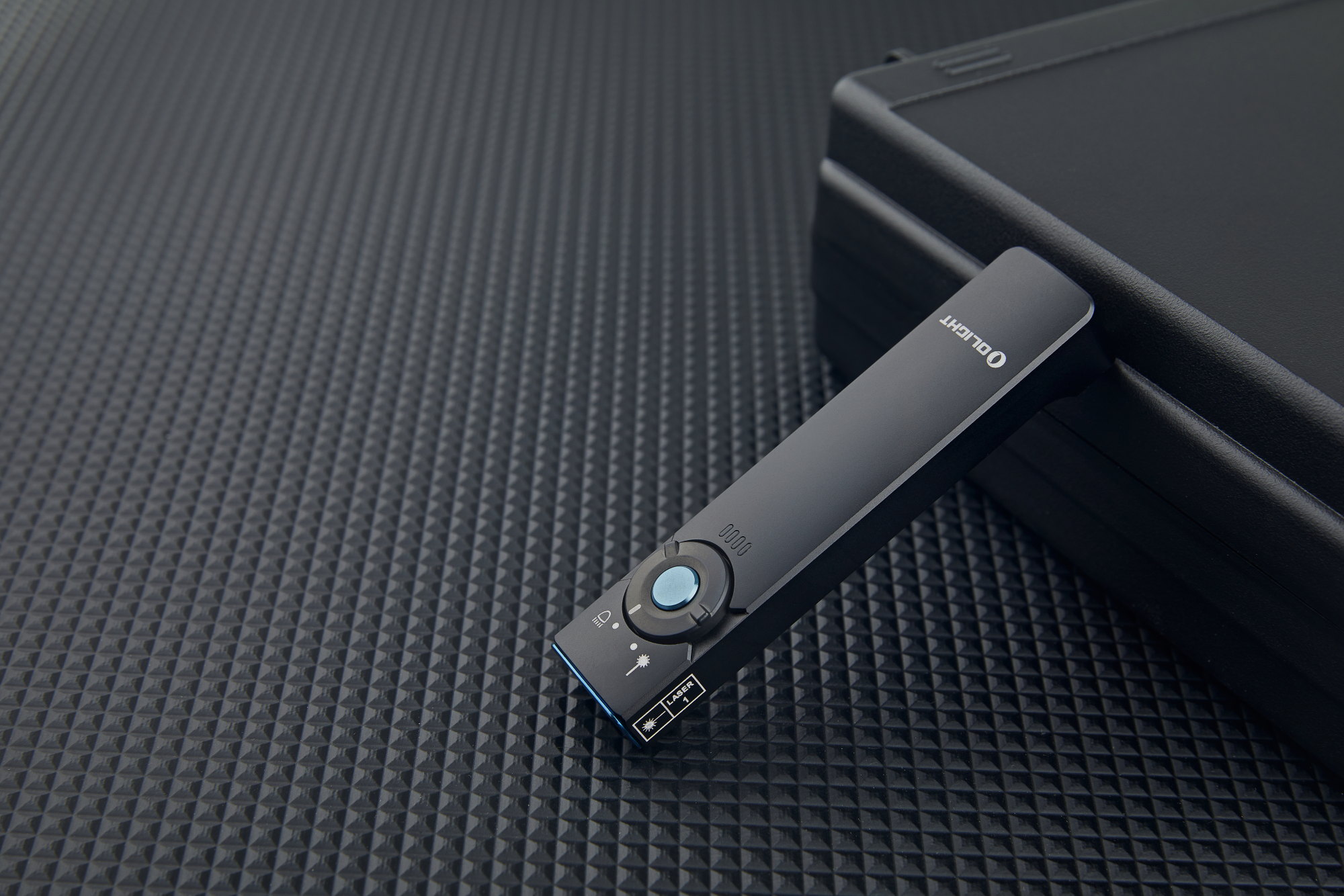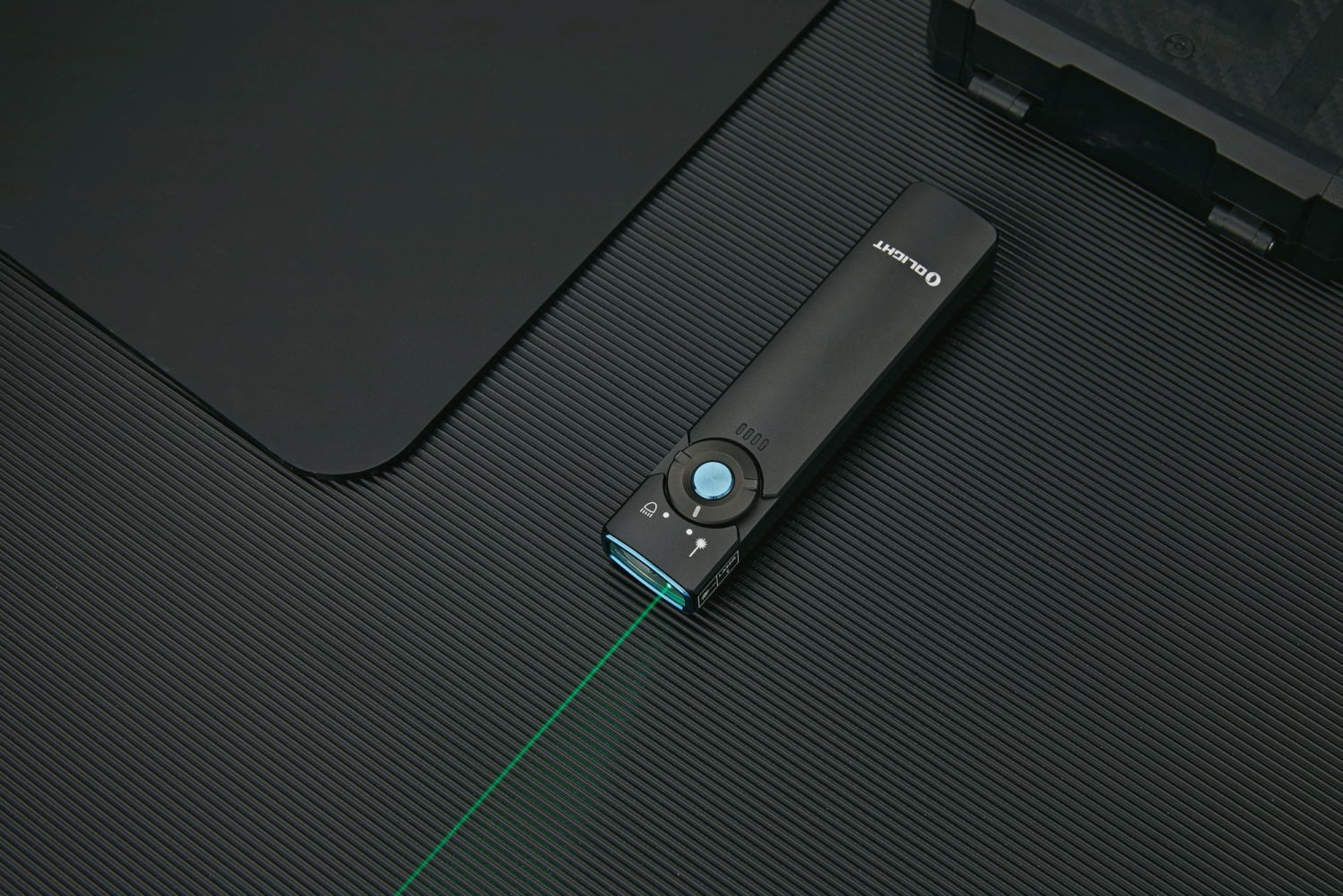 LED baterka Olight Arkfeld je prvá kompaktná baterka vybavená zeleným laserom. Päť úrovní jasu sa dajú jednoducho ovládať prostredníctvom centrálneho tlačidla, ktorý okrem ovládania, umožňuje prepínanie medzi laserom a klasickým svietením. Pod tlačidlom ovládania sa nachádza indikátor, ktorý signalizuje úroveň nabitia baterky.