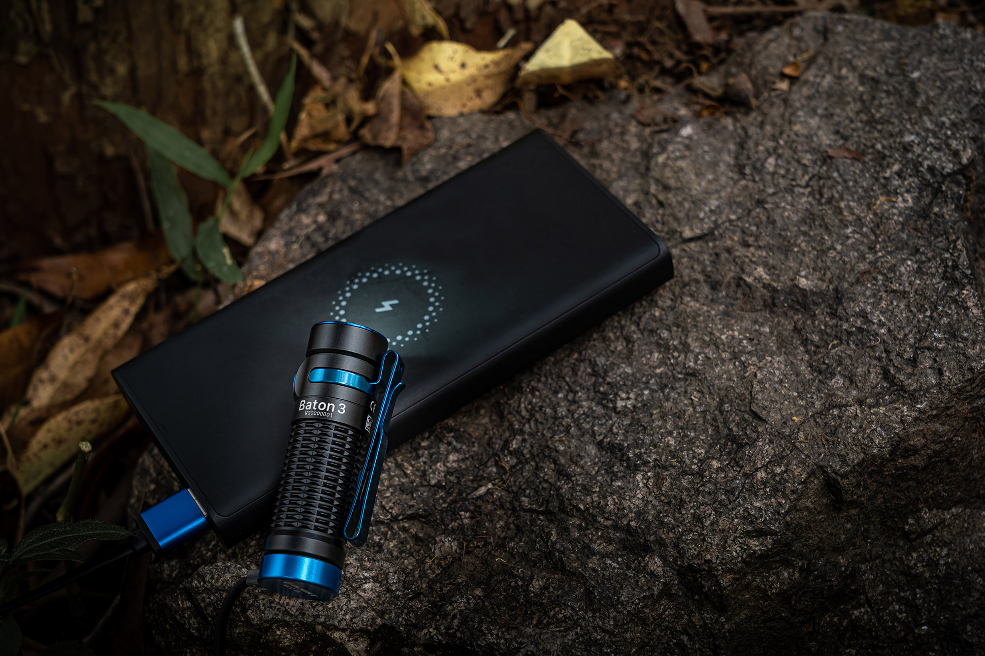 Svietidlo Baton 3 je napájané batériou 550 mAh 3,7 V IMR 16340 ktorú je možné nabíjať pomocou magnetickej nabíjačky USB Olight MCC1 (súčasť sady).